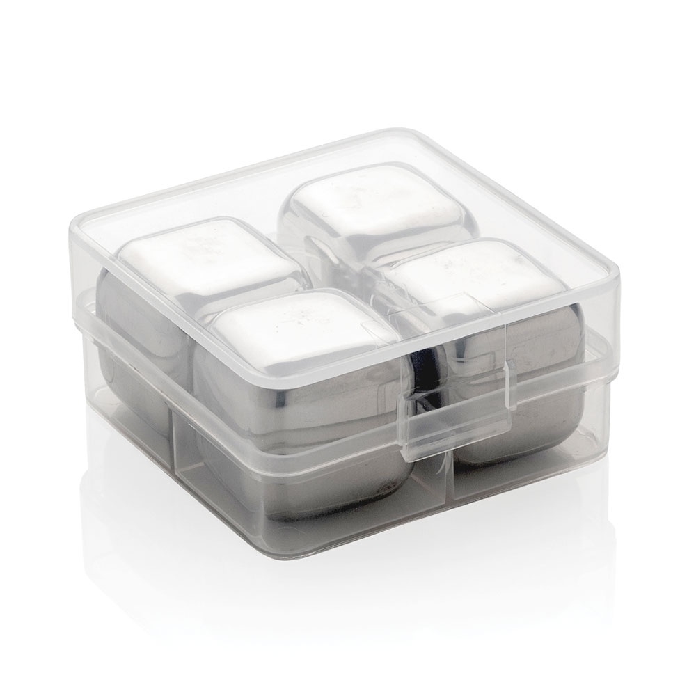 Kit Estojo com 4 Cubos de Gelo em Aço Inox