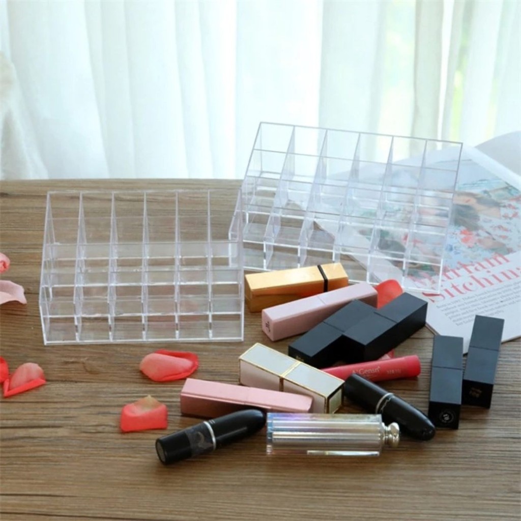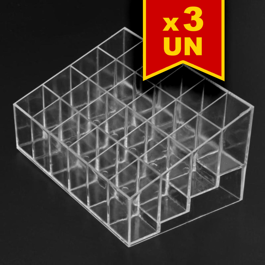 Kit 3 Suportes Organizadores em Acrílico 24 Batons Rímel Maquiagem