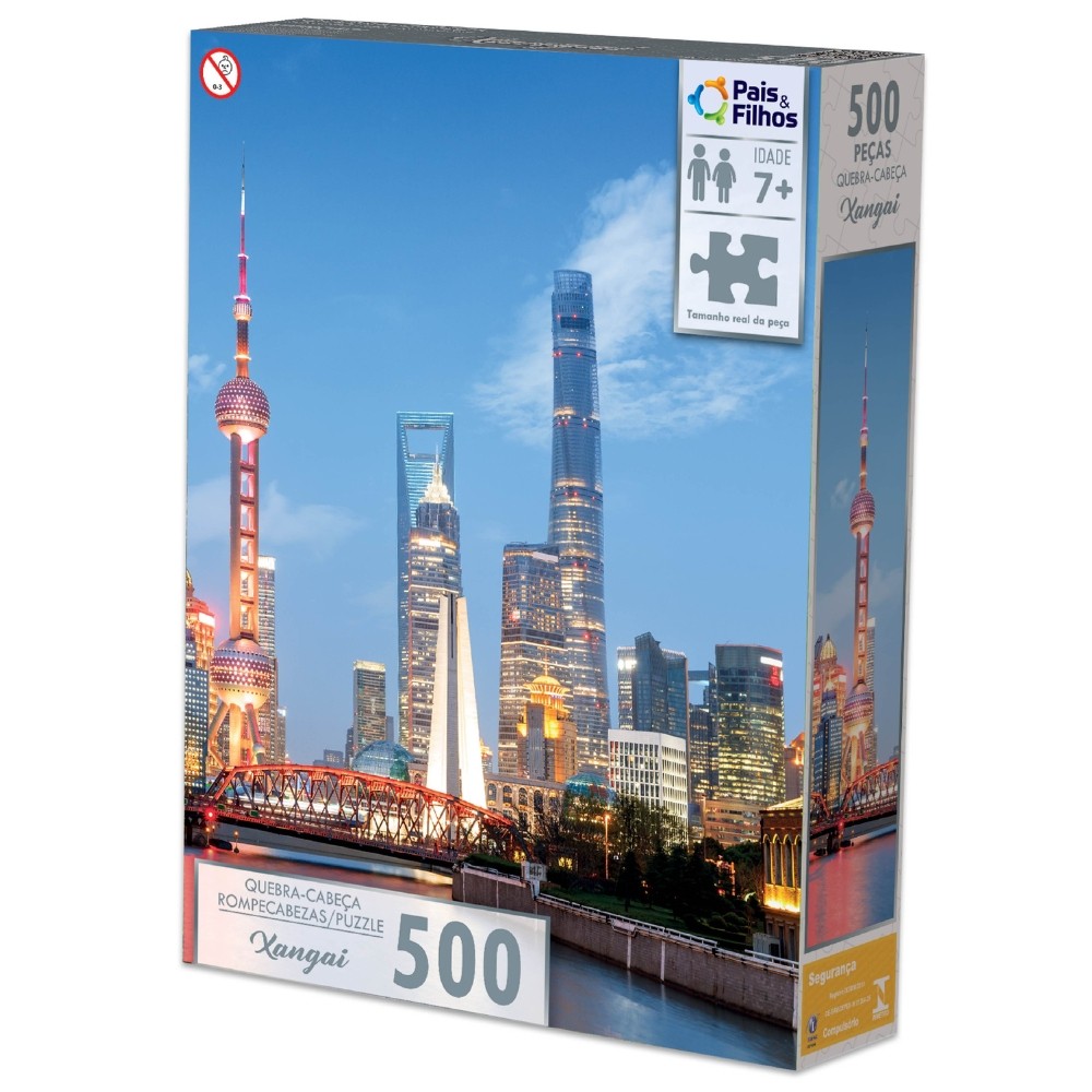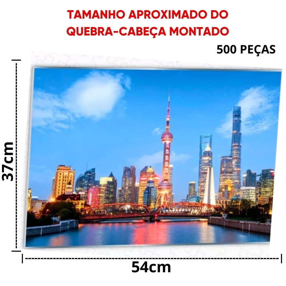 QUEBRA CABEÇA XANGAI 500 PEÇAS PAIS E FILHOS PUZZLE PAISAGEM PONTOS TURÍSTICOS CHINA ÁSIA PRÉDIOS