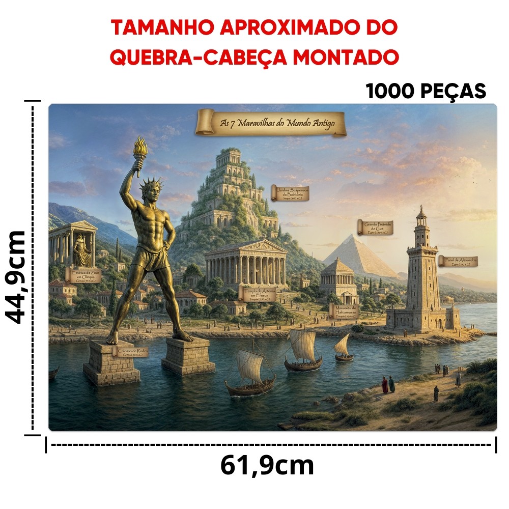 QUEBRA CABEÇA AS 7 MARAVILHAS DO MUNDO ANTIGO 1000 PEÇAS TOYSTER PUZZLE GIZÉ ÉFESO ZEUS BABILÔNIA IA