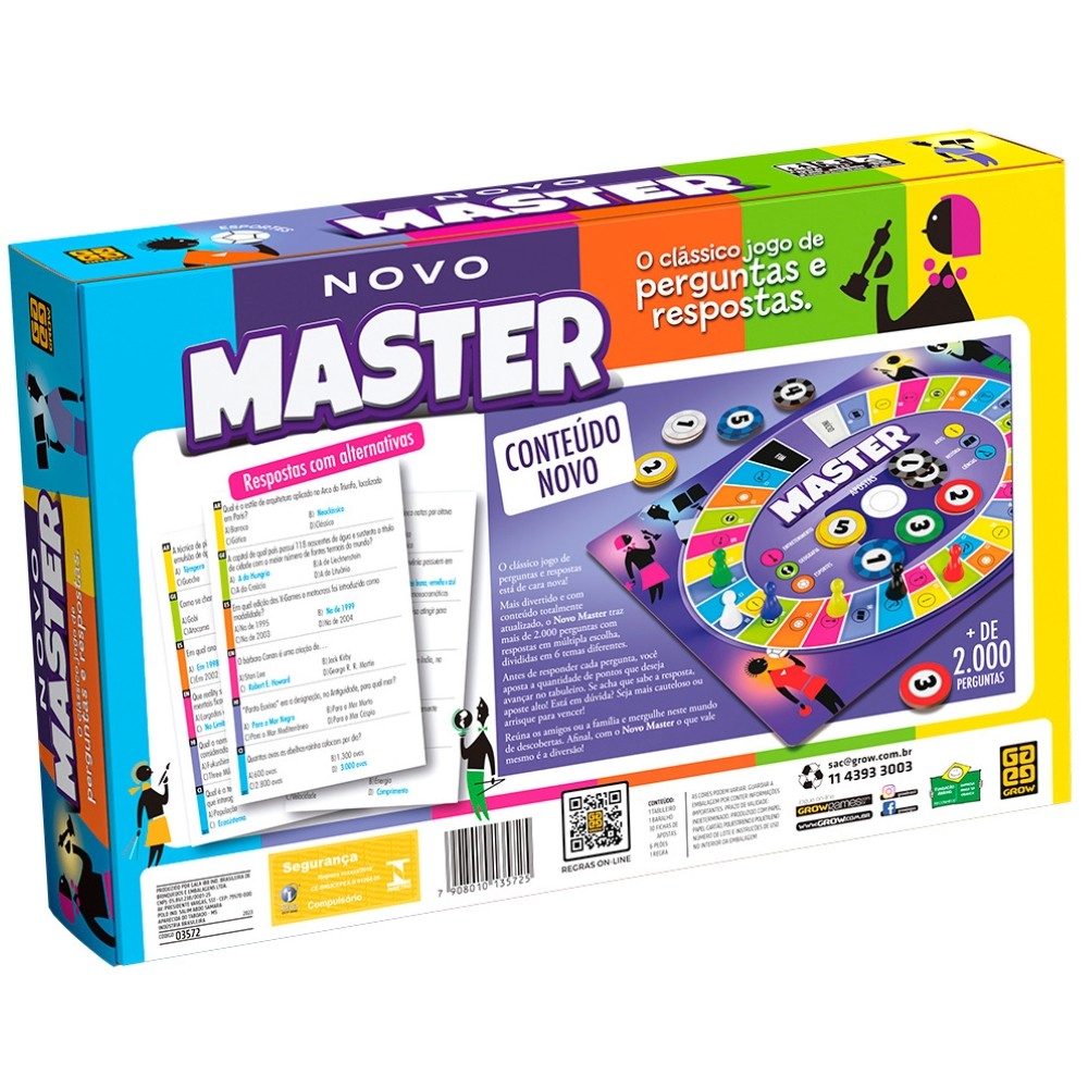 JOGO DE TABULEIRO MASTER GROW PERGUNTAS RESPOSTAS BRINQUEDO FAMÍLIA DIVERSÃO CARTAS APOSTA PERFIL