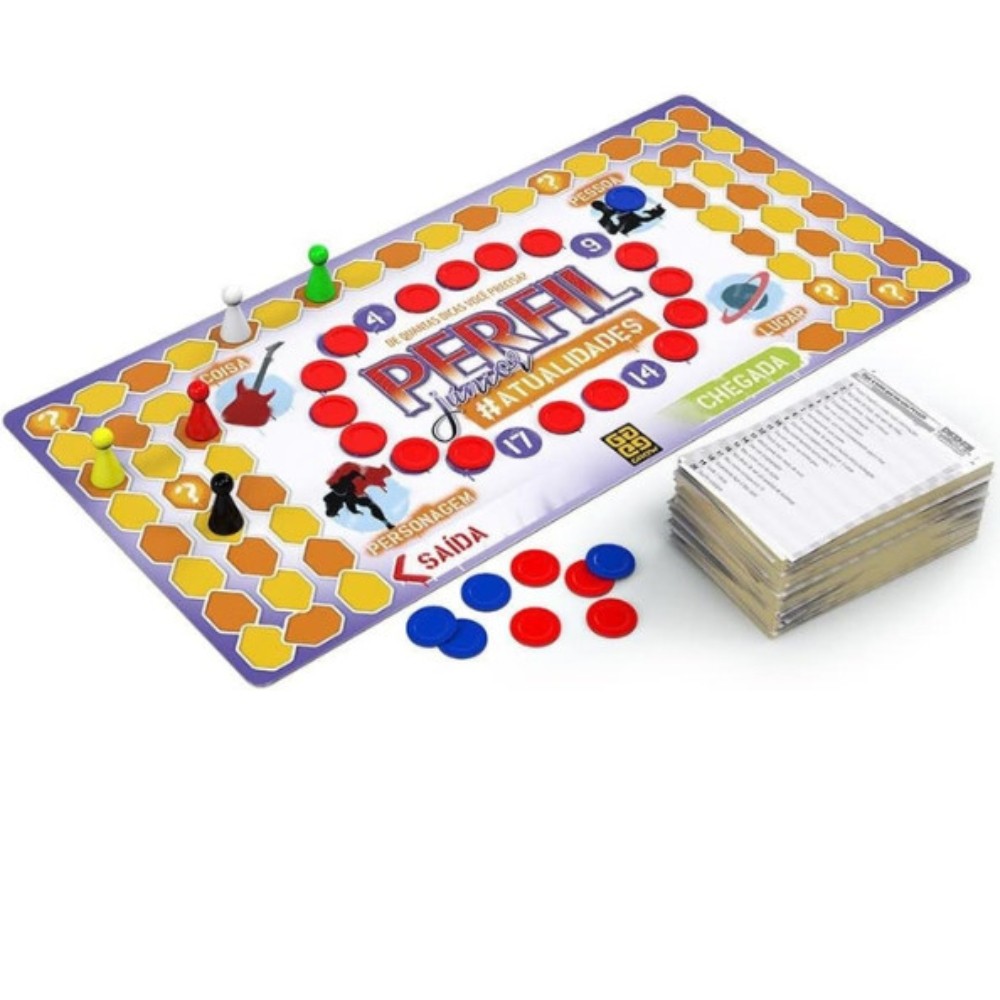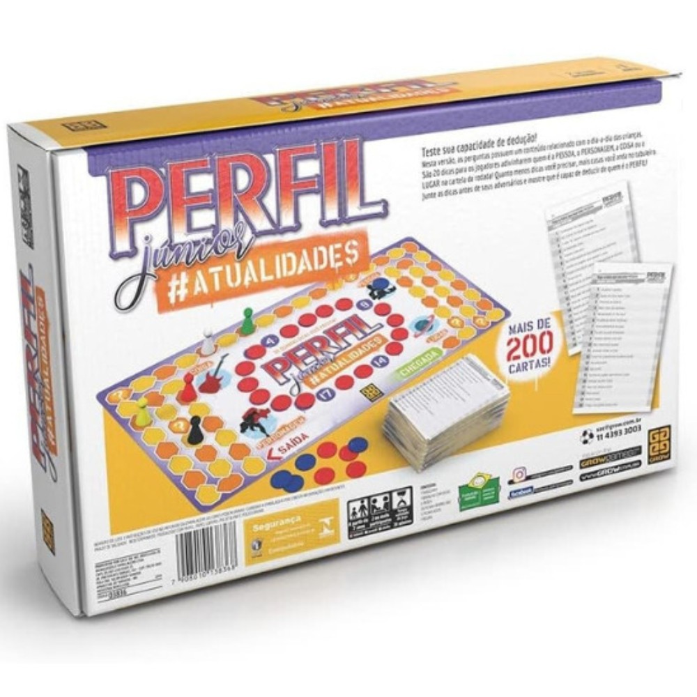 JOGO DE TABULEIRO PERFIL JÚNIOR ATUALIDADES GROW 200 CARTAS MESA DICAS PERGUNTAS FAMÍLIA DIDÁTICO JR