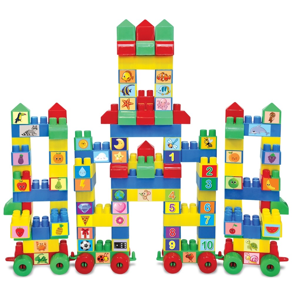 CASTELINHO 128 PEÇAS GGB BLOCOS DE MONTAR BRINQUEDO EDUCATIVO FORMAS CORES NÚMERO FRUTA ANIMAIS