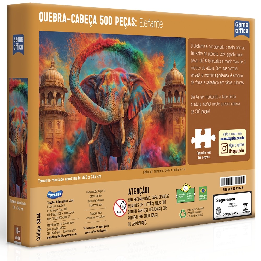 QUEBRA CABEÇA ELEFANTE 500 PEÇAS TOYSTER PUZZLE COLORIDO MONUMENTO TROMBA FORÇA ANIMAL QUADRO IA