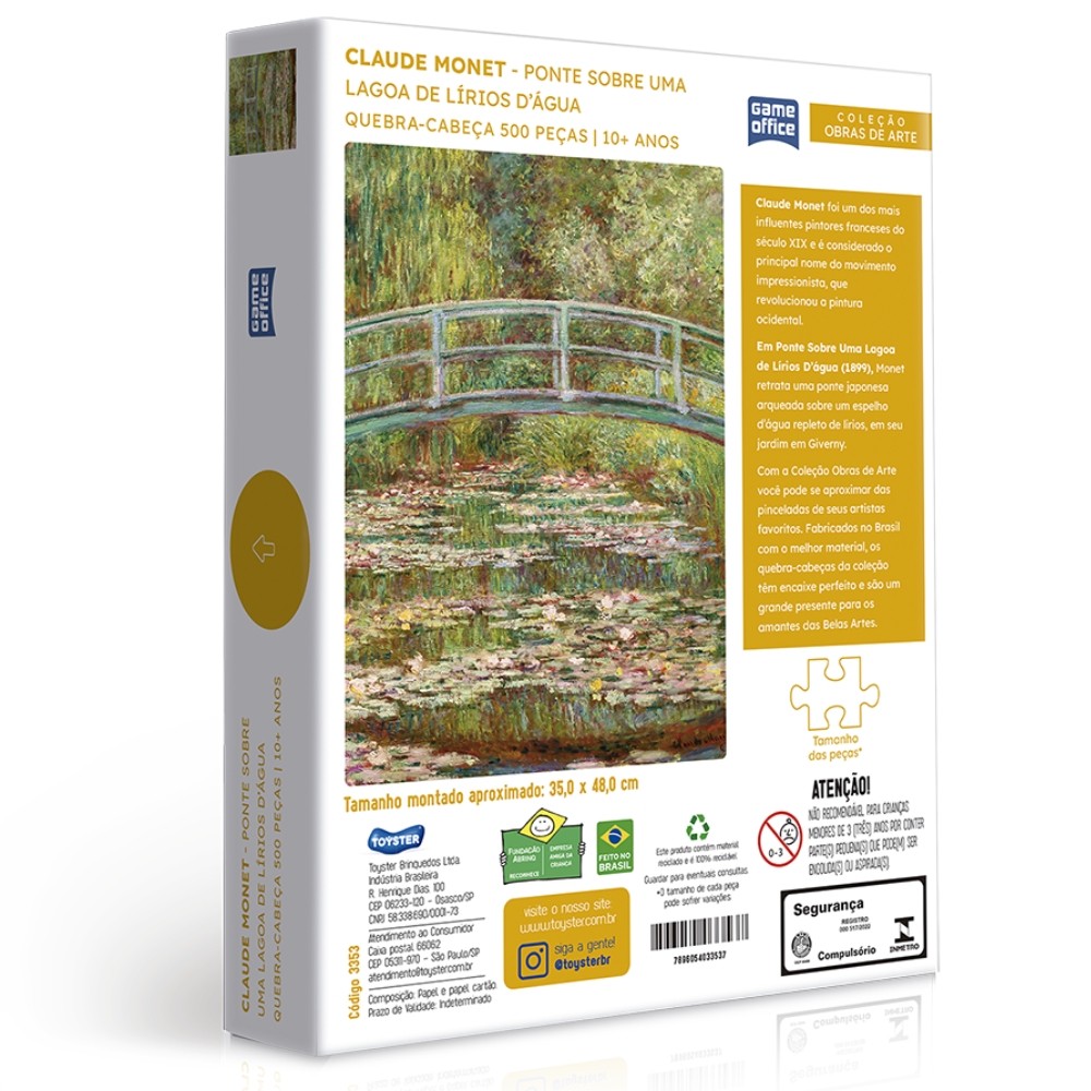 QUEBRA CABEÇA PONTE SOBRE UMA LAGOA DE LÍRIOS D'ÁGUA CLAUDE MONET 500 PEÇAS TOYSTER PUZZLE OBRA ARTE