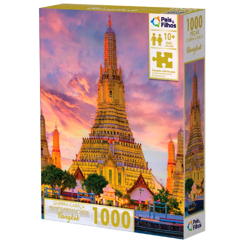 QUEBRA CABEÇA BANGKOK 1000 PEÇAS PAIS E FILHOS PUZZLE PAISAGEM TURÍSTICO TAILÂNDIA WAT ARUN TEMPLO &