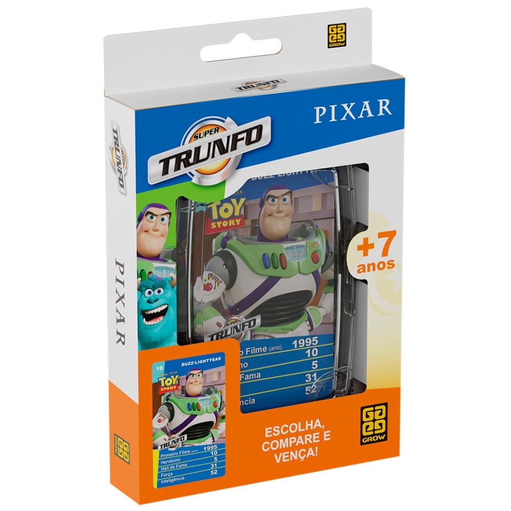 SUPER TRUNFO PIXAR 32 CARTAS GROW DISNEY PERSONAGEM DIVERTIDAMENTE 2 TOY STORY MONSTROS SA INCRÍVEIS