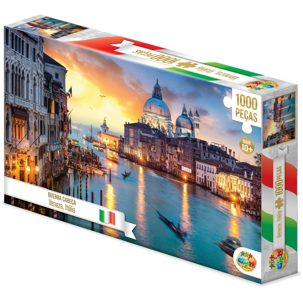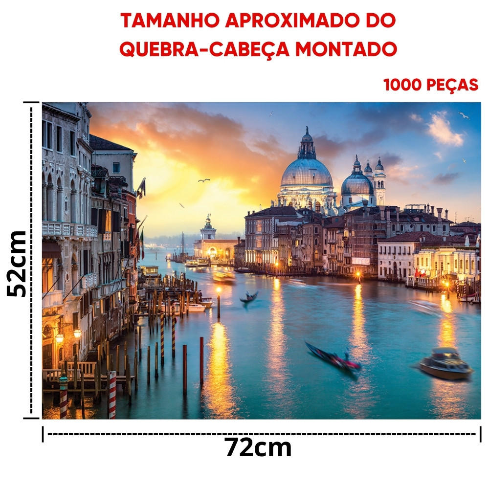 QUEBRA CABEÇA VENEZA 1000 PEÇA GGB BRINQUEDOS PUZZLE PAISAGEM PONTOS TURÍSTICOS ITÁLIA RIO BARCO CÉU