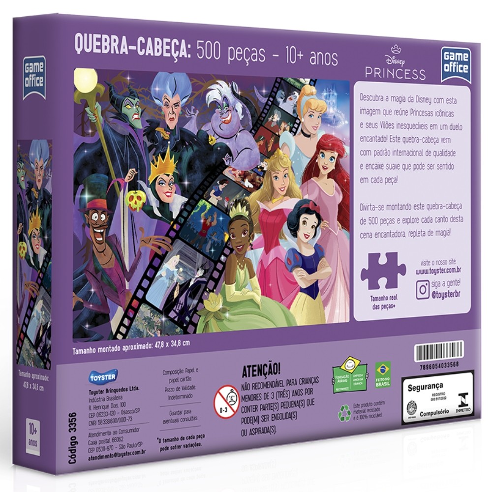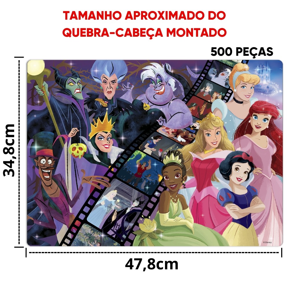 QUEBRA CABEÇA PRINCESAS E VILÕES DISNEY 500 PEÇAS TOYSTER PUZZLE FILMES MAGIA MALÉVOLA ARIEL BRANCA