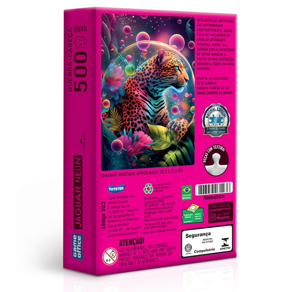 QUEBRA CABEÇA IA JAGUAR NEON 500 PEÇA NANO ONÇA PINTADA TOYSTER PUZZLE JOGOS INTELIGÊNCIA ARTIFICIAL