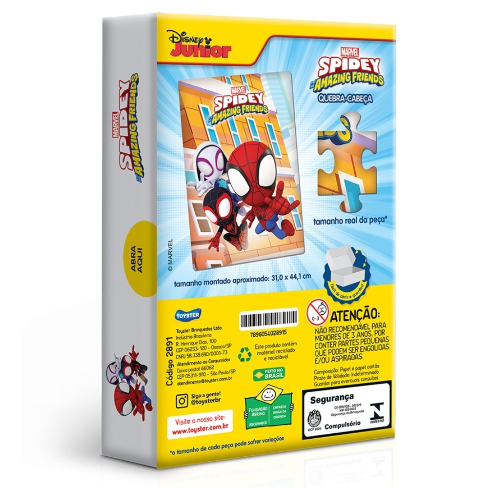 QUEBRA CABEÇA SPIDEY DISNEY JUNIOR 60 PEÇAS TOYSTER MARVEL SPIDER MAN PUZZLE HOMEM ARANHA DESENHO