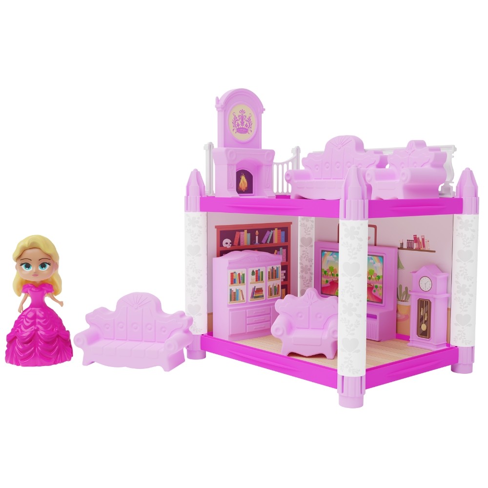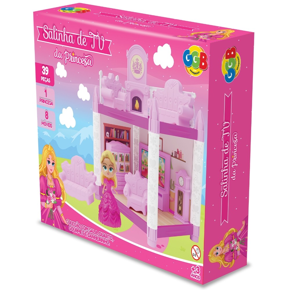 SALINHA DE TV DA PRINCESA GGB BRINQUEDOS 39 PEÇAS CÔMODOS CASINHA MENINAS 8 MÓVEIS 1 BONECA MONTAR
