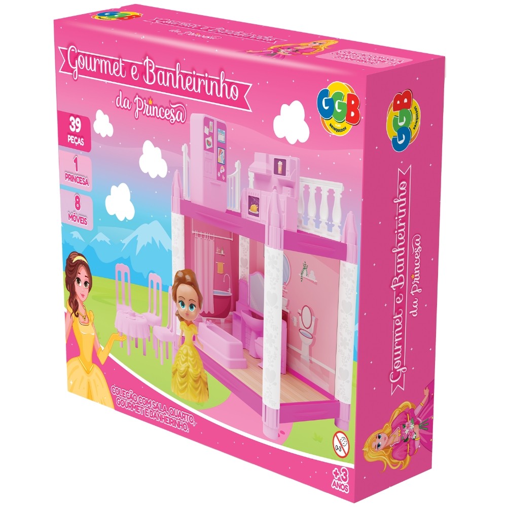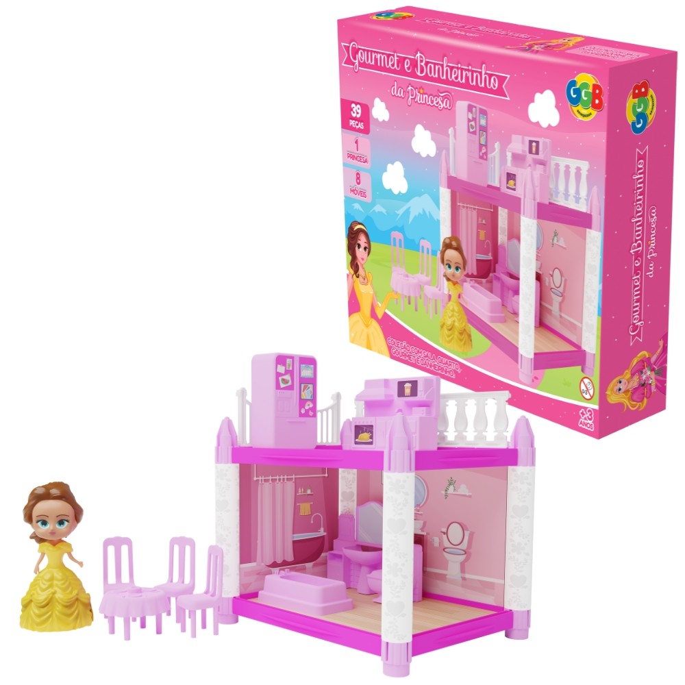 GOURMET E BANHEIRINHO DA PRINCESA GGB BRINQUEDOS 39 PEÇAS CÔMODOS CASINHA MENINAS 8 MÓVEIS BONECA