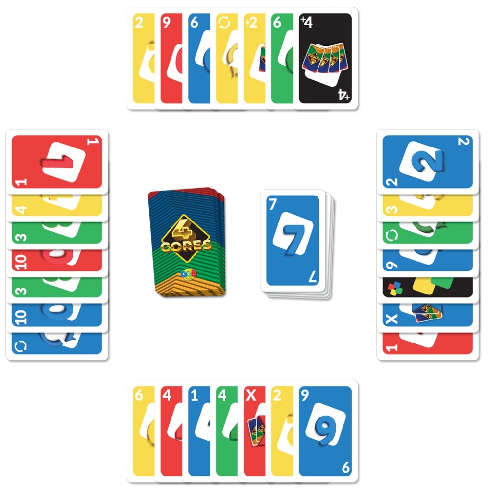 JOGO 4 CORES 110 CARTAS GGB BRINQUEDOS DIVERSÃO RACIOCÍNIO MESA BARALHO UNO CAN CAN FAMÍLIA NÚMEROS