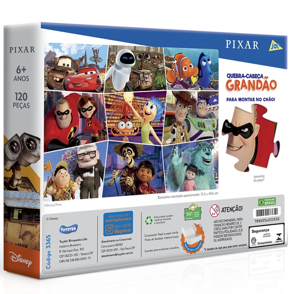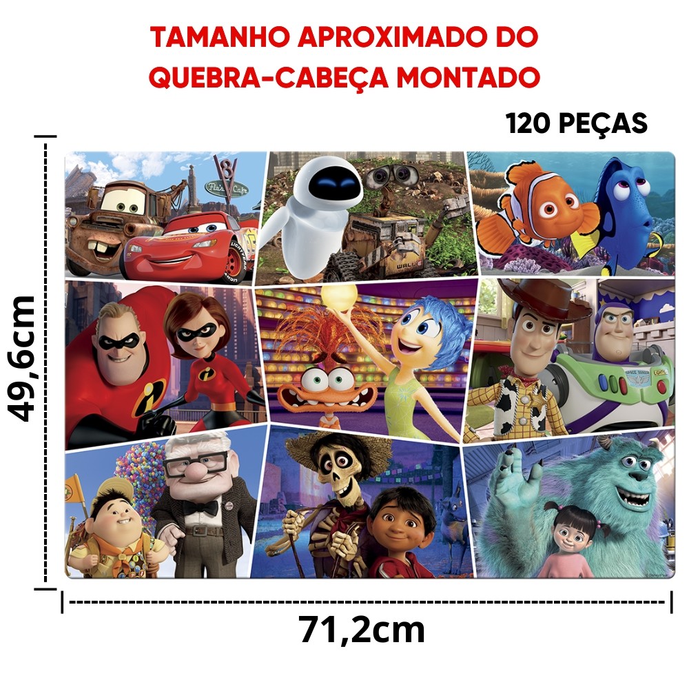 QUEBRA CABEÇA GRANDÃO PIXAR DISNEY 120 PEÇAS GRANDES TOYSTER FILMES CARROS DIVERTIDAMENTE TOY STORY