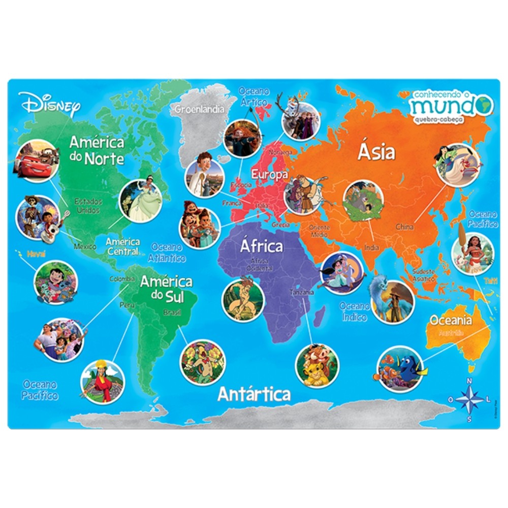 QUEBRA CABEÇA GRANDÃO CONHECENDO O MUNDO DISNEY 120 PEÇAS GRANDES TOYSTER PUZZLE MAPA MUNDO PAÍSES
