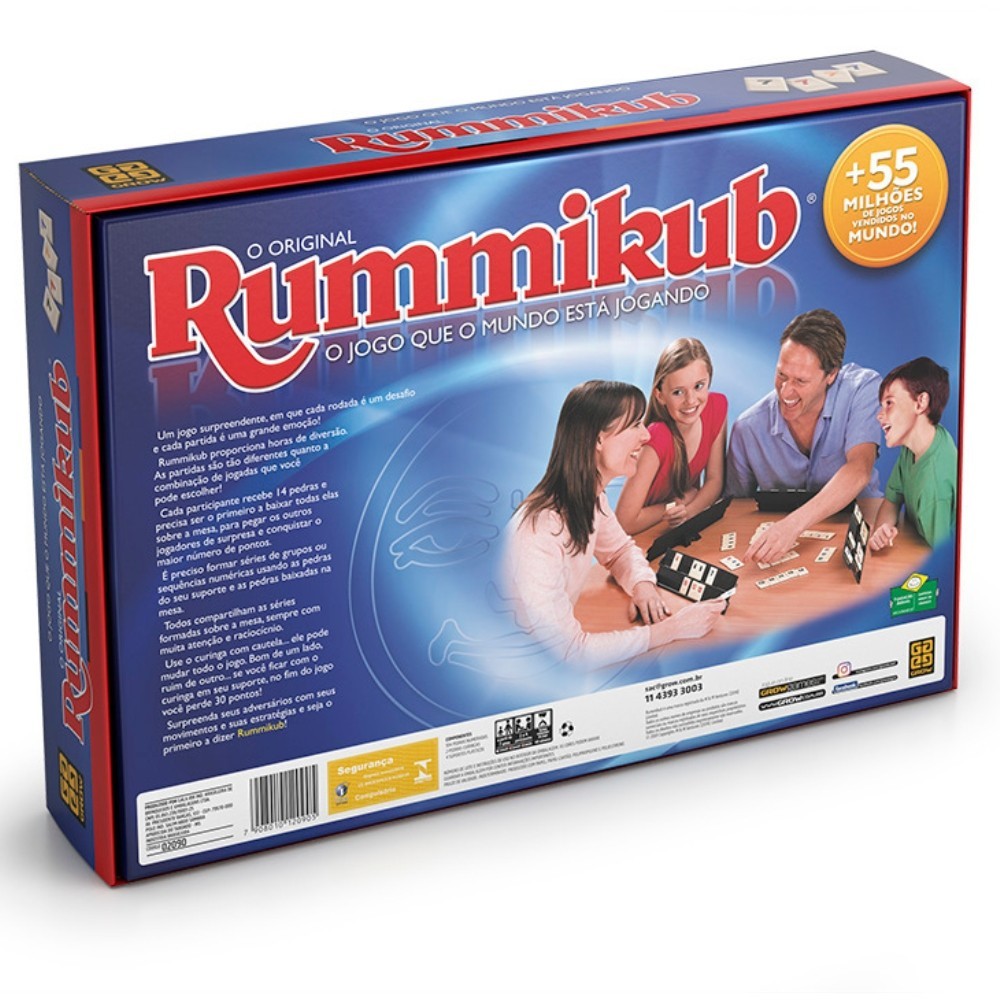 JOGO DE TABULEIRO RUMMIKUB GROW BRINQUEDO DE MESA FAMÍLIA DIVERSÃO GAMES ESTRATÉGIA DESAFIO PEDRAS