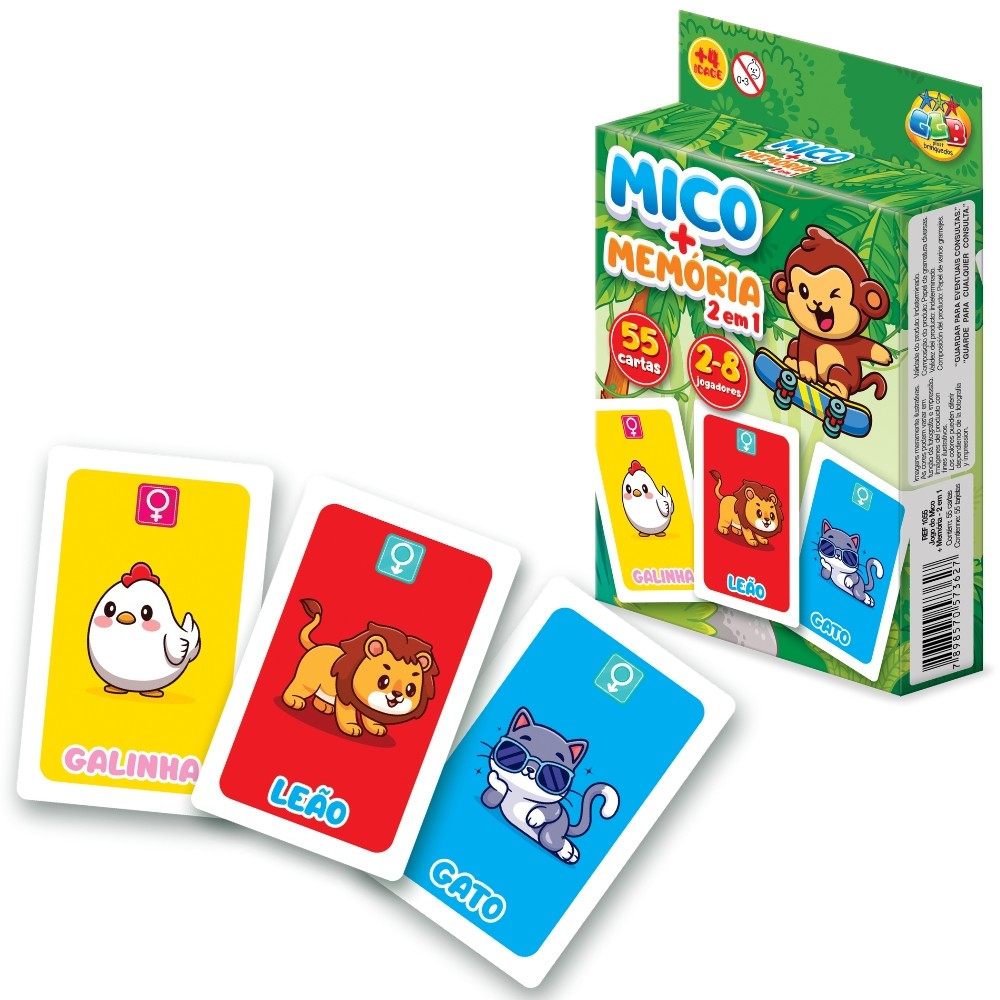 JOGO 2 EM 1 MICO + MEMÓRIA 55 CARTAS GGB BRINQUEDO DIVERSÃO RACIOCÍNIO MACACO EDUCATIVO ANIMAIS MESA
