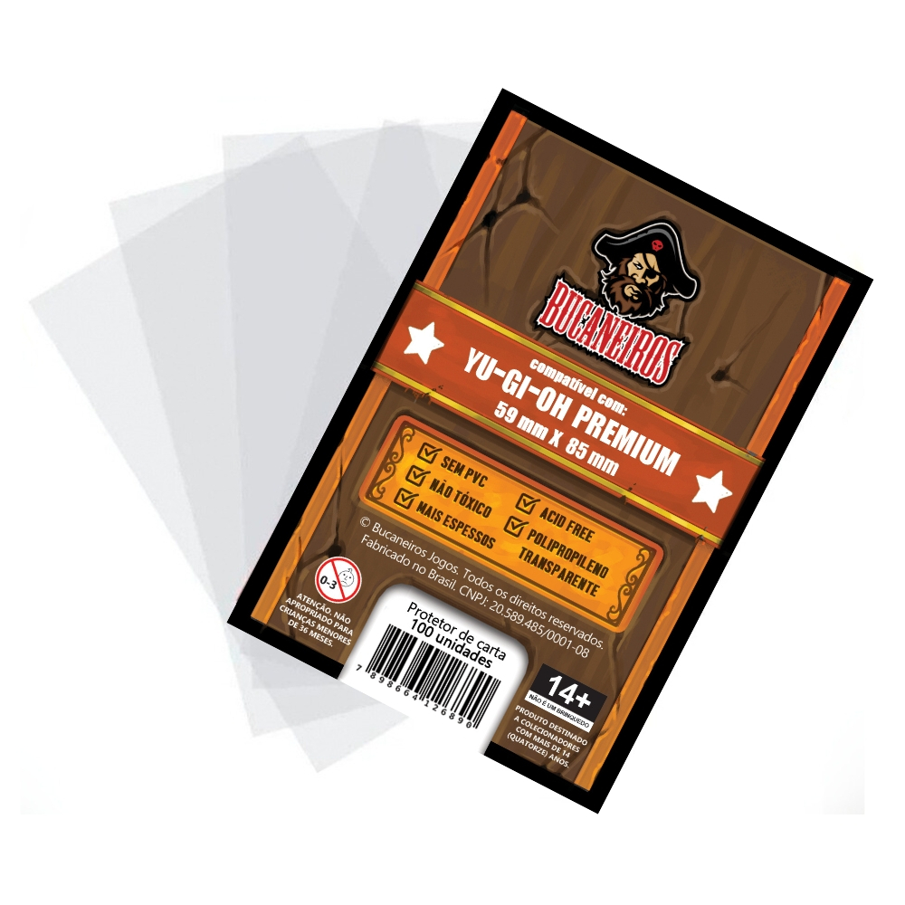 Protetor de Cartas Sleeve YU-GI-OH! Premium 59x85mm Transparente 100un Bucaneiros Protetor pacote