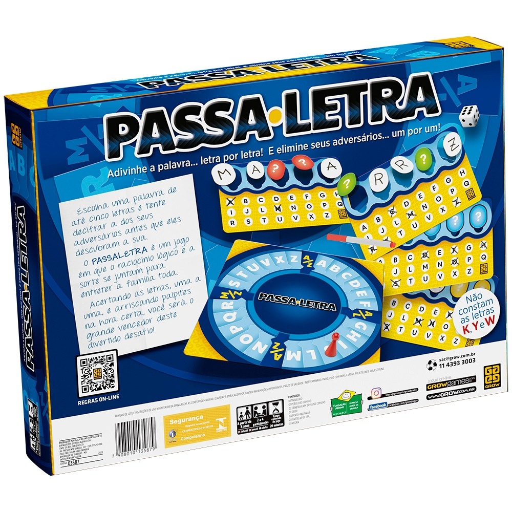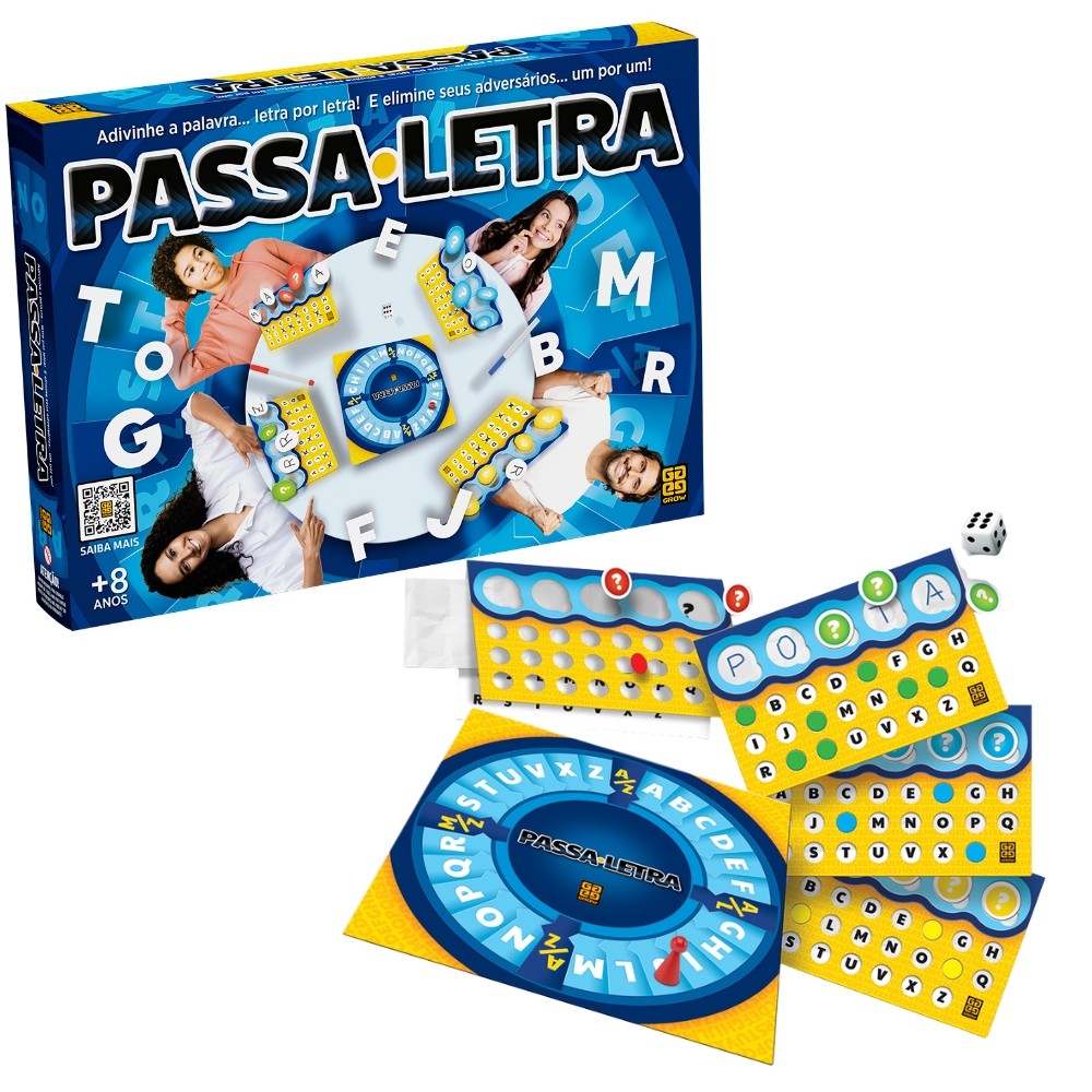 JOGO DE TABULEIRO PASSA LETRA GROW BRINQUEDO MESA STOP CARTA TRAVA BASTA TAPPLE PALAVRAS FORCA PENSA