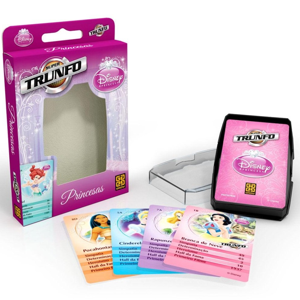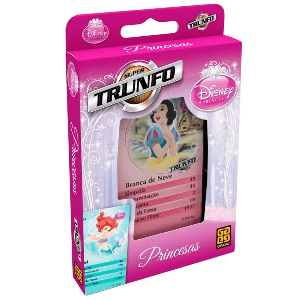 SUPER TRUNFO PRINCESAS 32 CARTAS GROW DISNEY BRANCA DE NEVE CINDERELA JASMINE ARIEL MENINAS CRIANÇAS