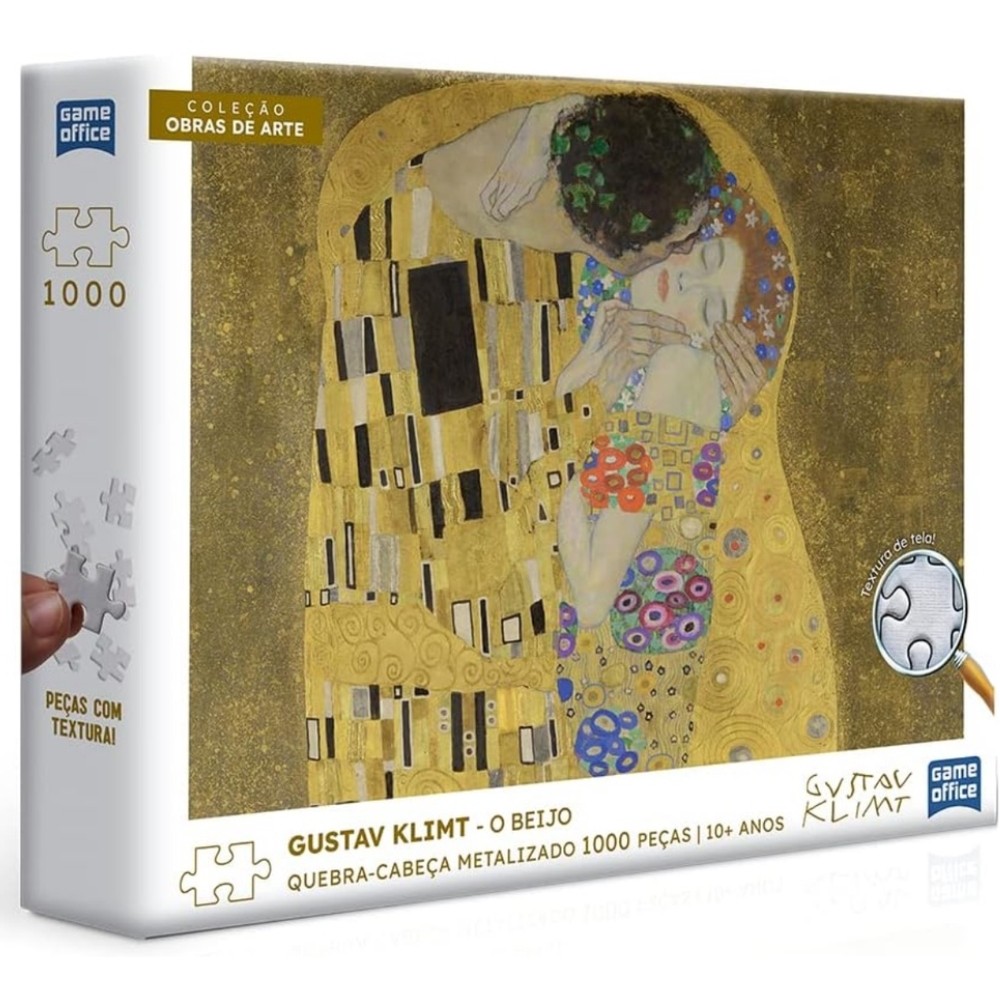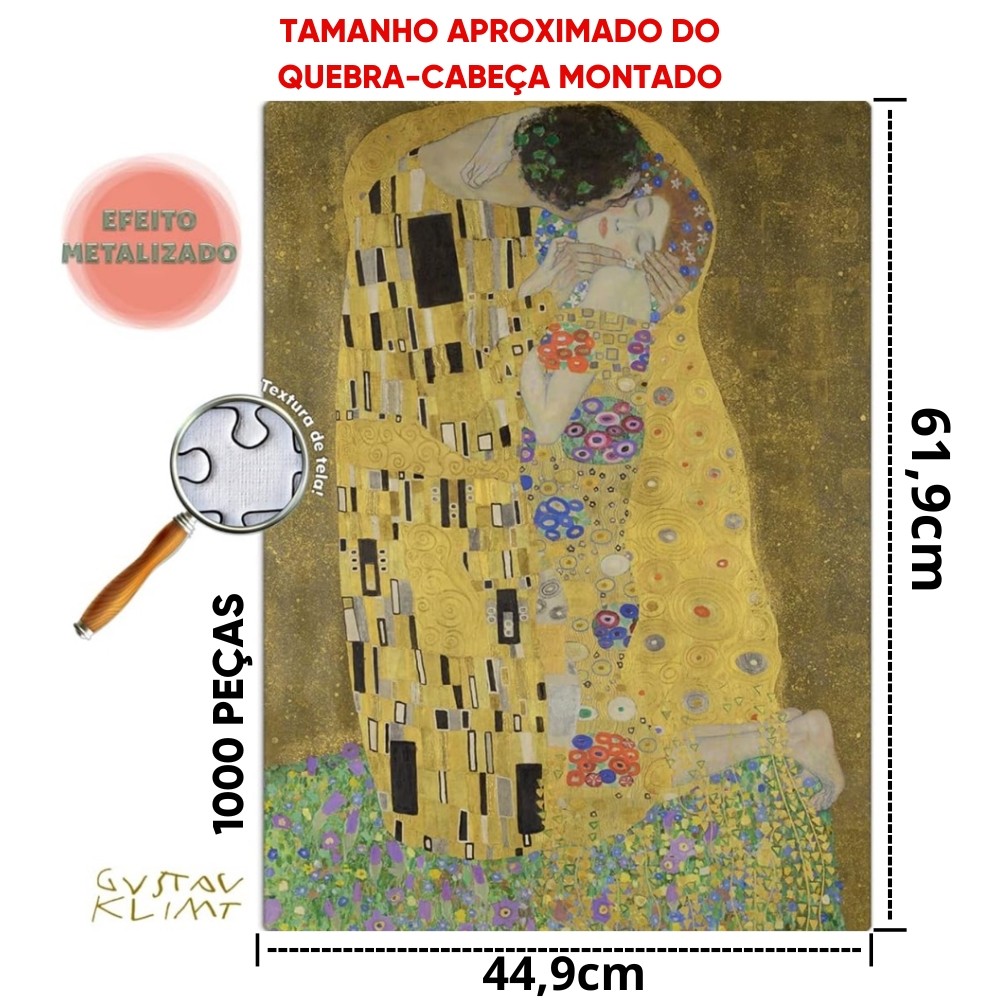 QUEBRA CABEÇA METALIZADO O BEIJO GUSTAV KLIMT 1000 PEÇAS TOYSTER PUZZLE OBRA DE ARTE TEXTURA DE TELA