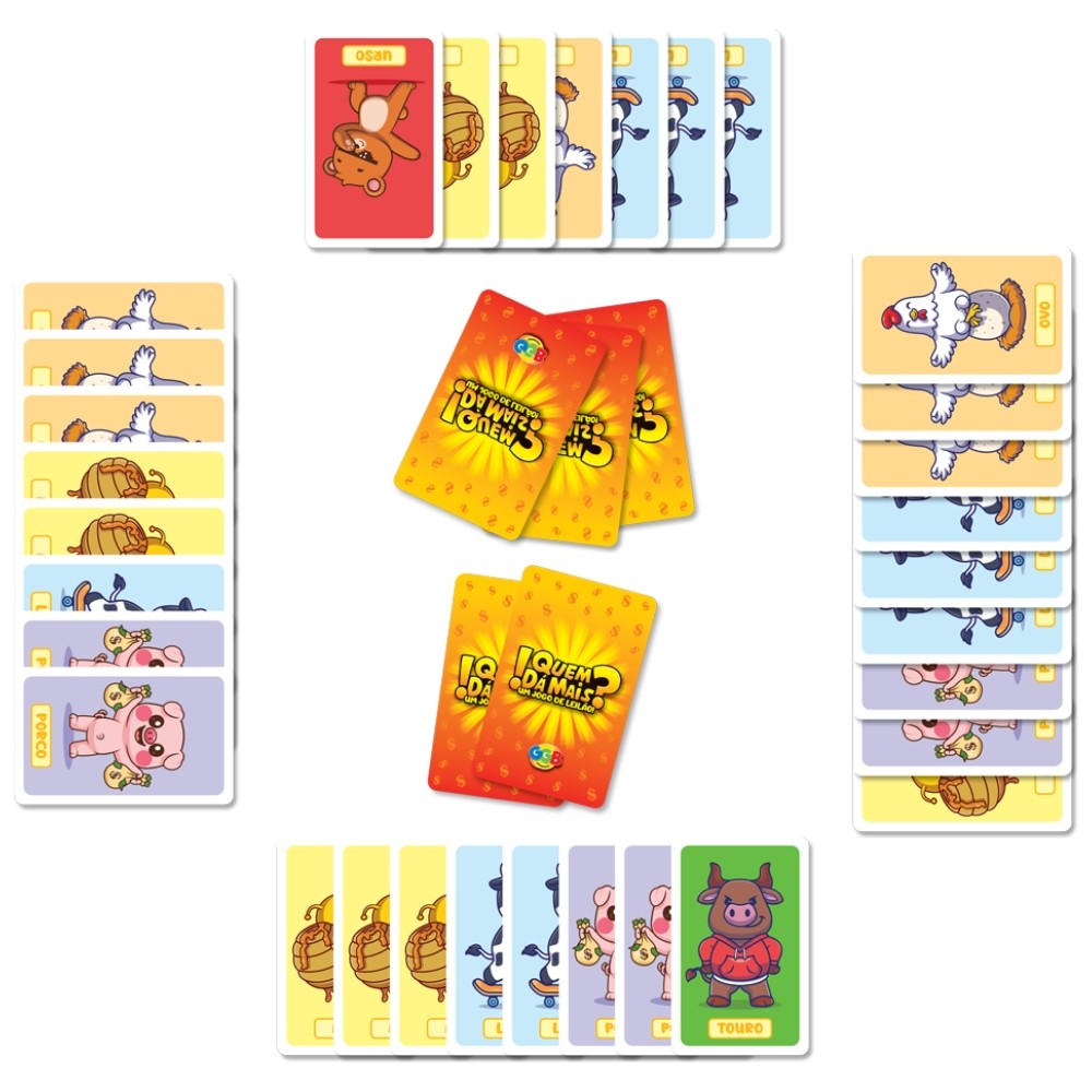 JOGO QUEM DÁ MAIS? UM JOGO DE LEILÃO 74 CARTAS GGB BRINQUEDO RACIOCÍNIO CRIANÇA FAMÍLIA BARALHO MESA