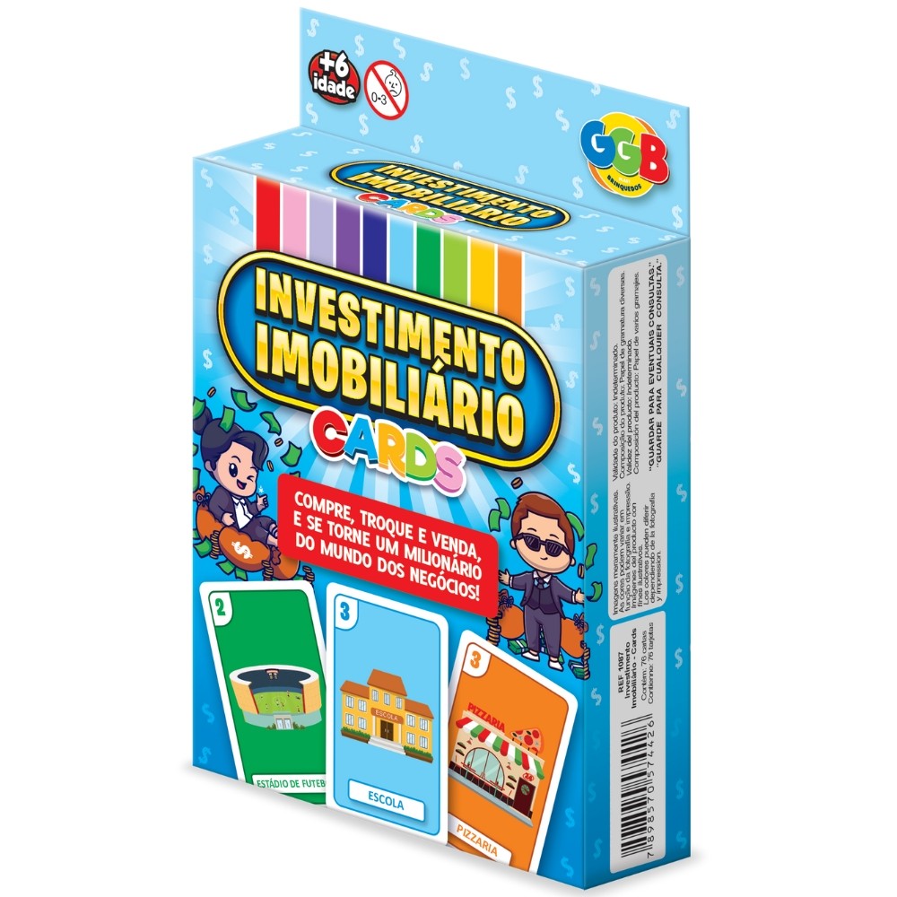 JOGO INVESTIMENTO IMOBILIÁRIO 76 CARTAS GGB BRINQUEDOS MESA BANCO COMPRA VENDA MONOPOLY BARALHO CARD