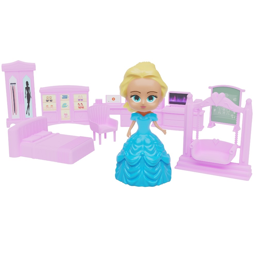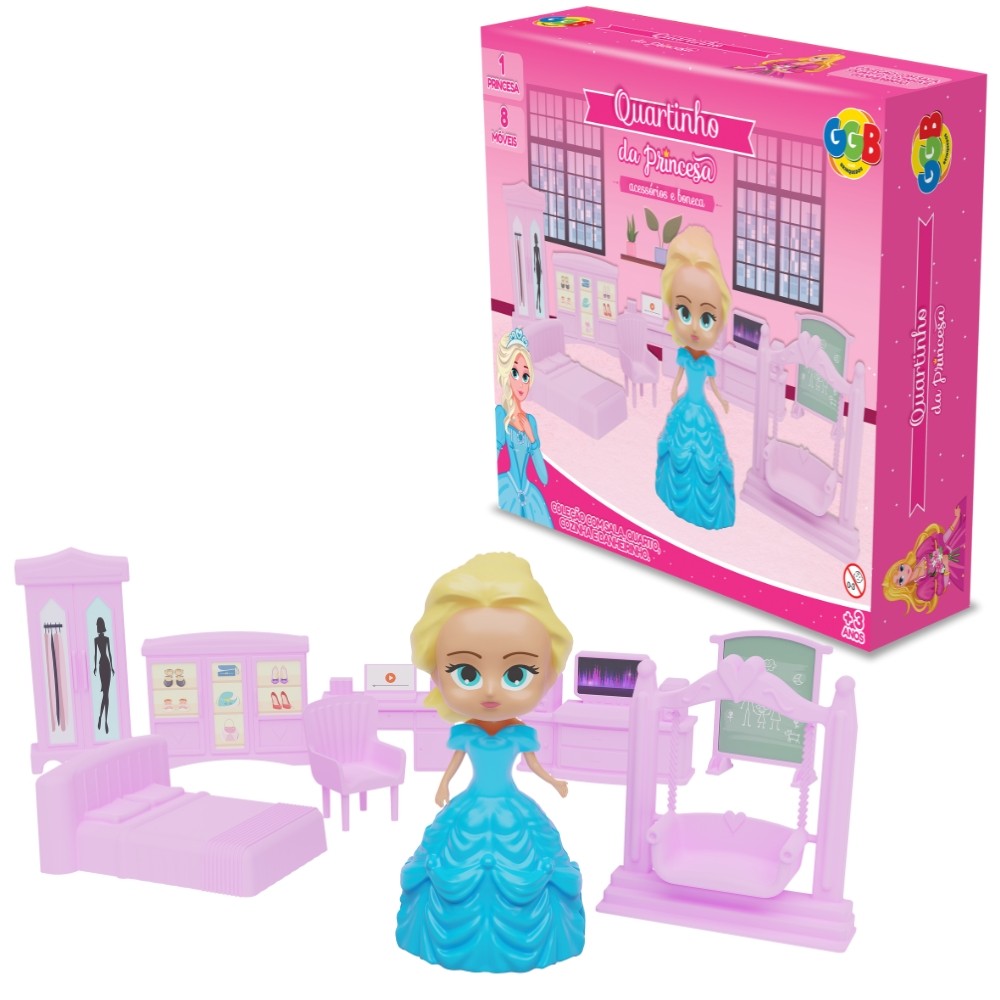 QUARTINHO DA PRINCESA GGB BRINQUEDOS ACESSÓRIOS BONECA MENINA MÓVEIS CASINHA CÔMODO 13 PEÇAS CASTELO