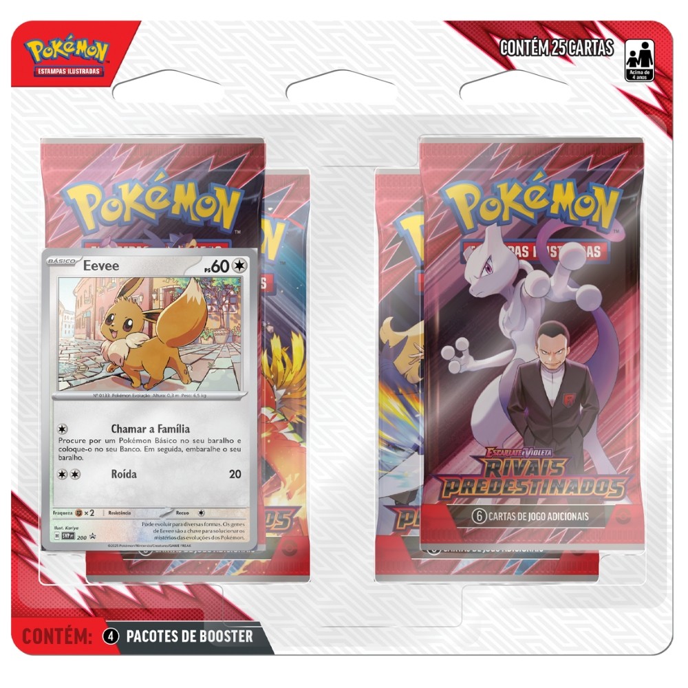 BLISTER QUÁDRUPLO ZARUDE OU EEVEE RIVAIS PREDESTINADOS EV10 COPAG POKÉMON TCG 4 BOOSTERS TREINADORES