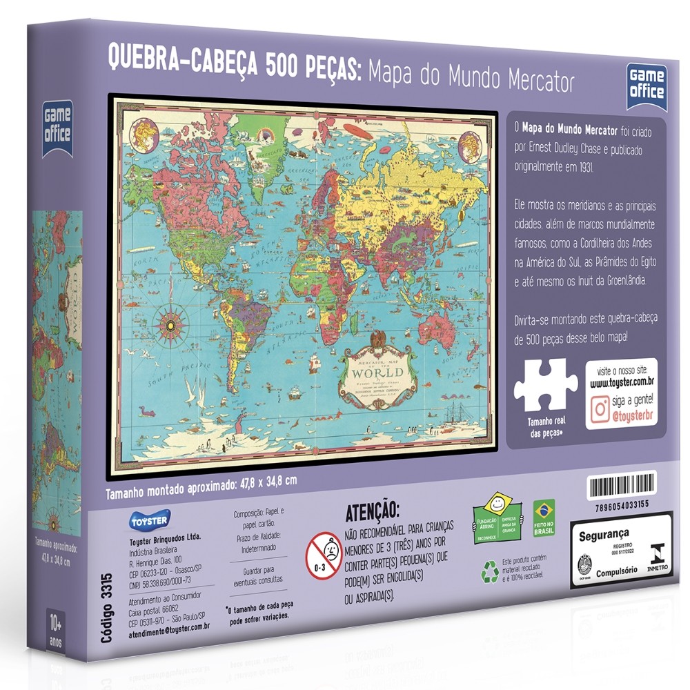 QUEBRA CABEÇA MAPA DO MUNDO MERCATOR 500 PEÇAS TOYSTER MAP OF THE WORLD GEOGRAFIA PUZZLE MUNDI PAÍS