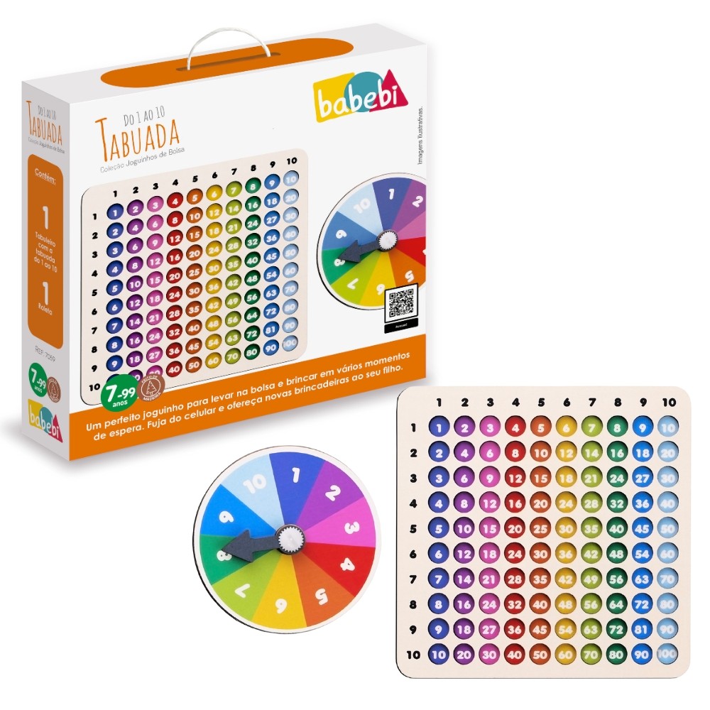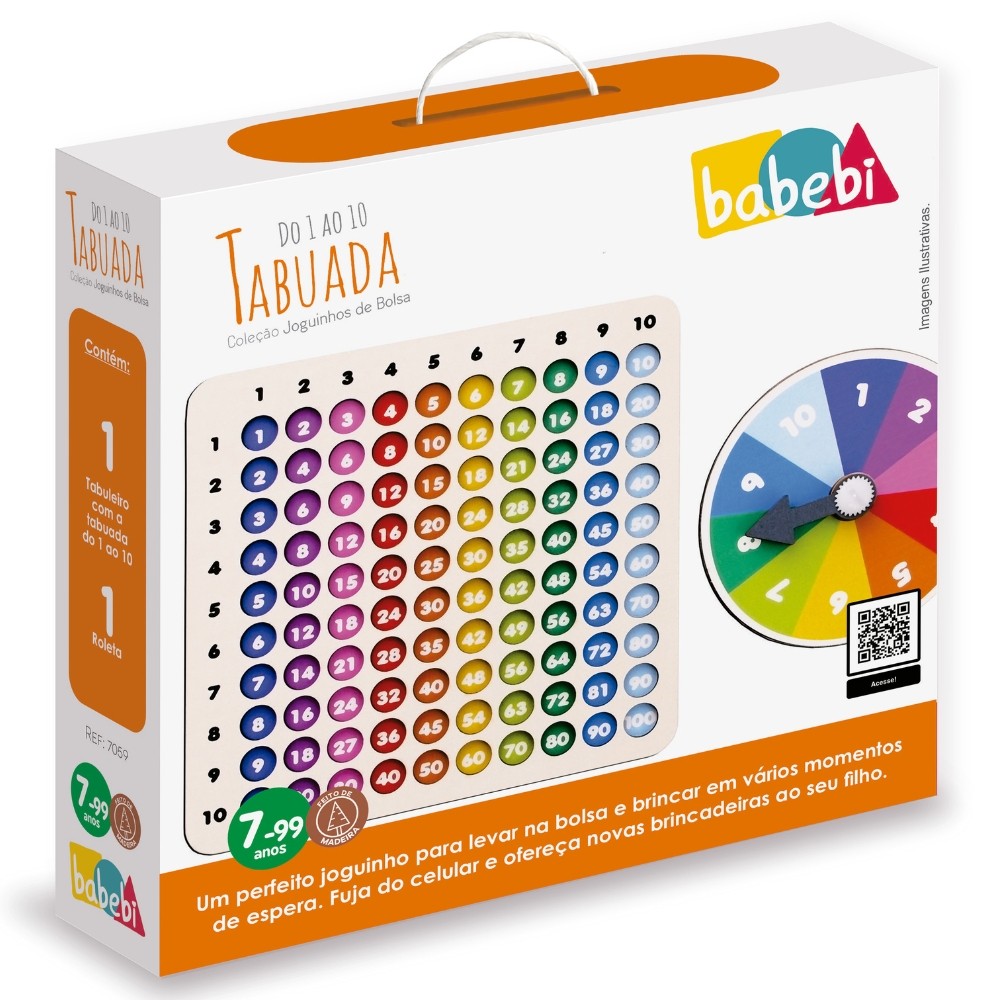 JOGO TABUADA DO 1 A 10 JOGUINHO DE BOLSA BABEBI MADEIRA TABULEIRO EDUCATIVO LÓGICO MATEMÁTICA BRINCA