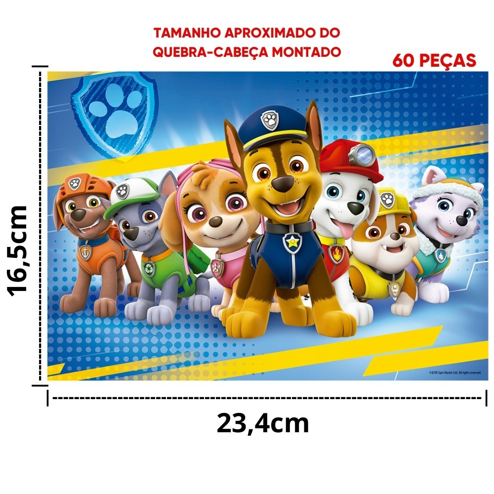 KIT 6 QUEBRA CABEÇAS PATRULHA CANINA SUPERPROGRESSIVO 12 20 30 40 50 60 PEÇAS GROW PAW PATROL PUZZLE