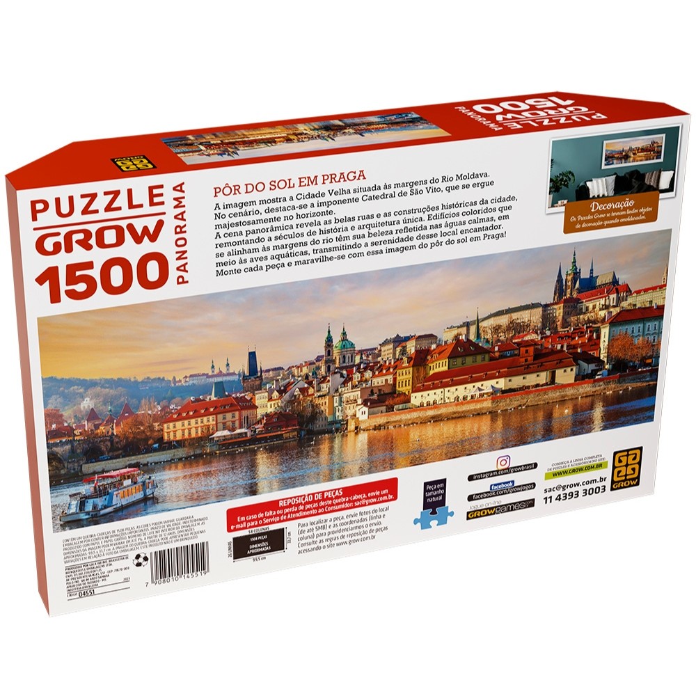 QUEBRA CABEÇA PANORAMA PÔR DO SOL EM PRAGA 1500 PEÇAS GROW PUZZLE PAISAGEM PONTO TURÍSTICO QUADRO
