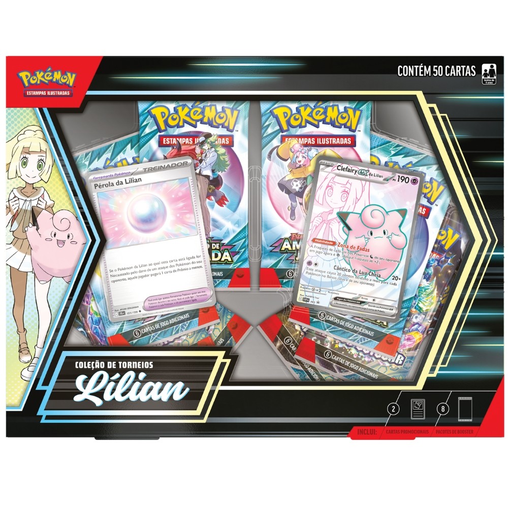 BOX POKÉMON COLEÇÃO DE TORNEIOS LÍLIAN CLEFAIRY EX COPAG 50 CARTAS TCG BOOSTER TREINADOR EV9 PÉROLA
