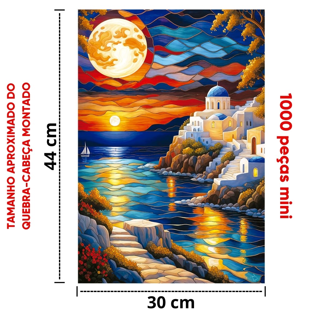 QUEBRA CABEÇA MINI VITRAL GREGO 1000 PEÇAS PEQUENAS PUZZLE GROW GRÉCIA PRAIA PÔR SOL PONTO TURÍSTICO