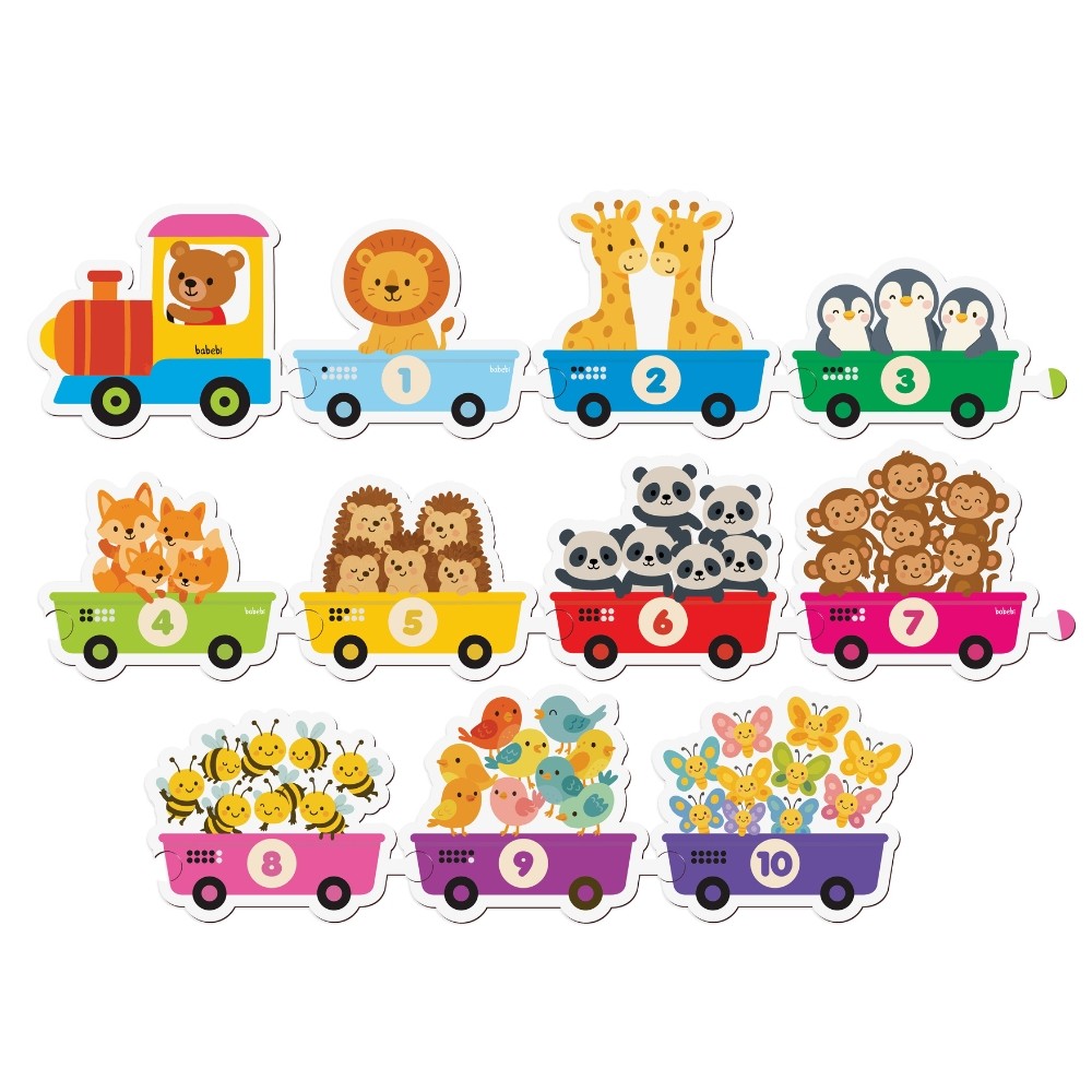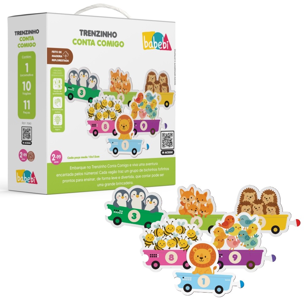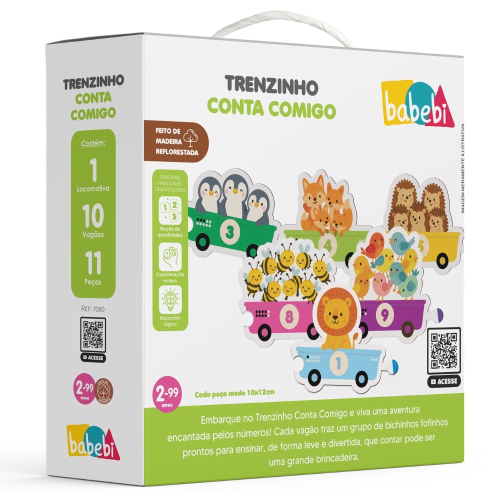 QUEBRA CABEÇA TRENZINHO CONTA COMIGO BABEBI NÚMERO LÓGICO MADEIRA JOGO EDUCATIVO ANIMAIS TREM PEÇAS