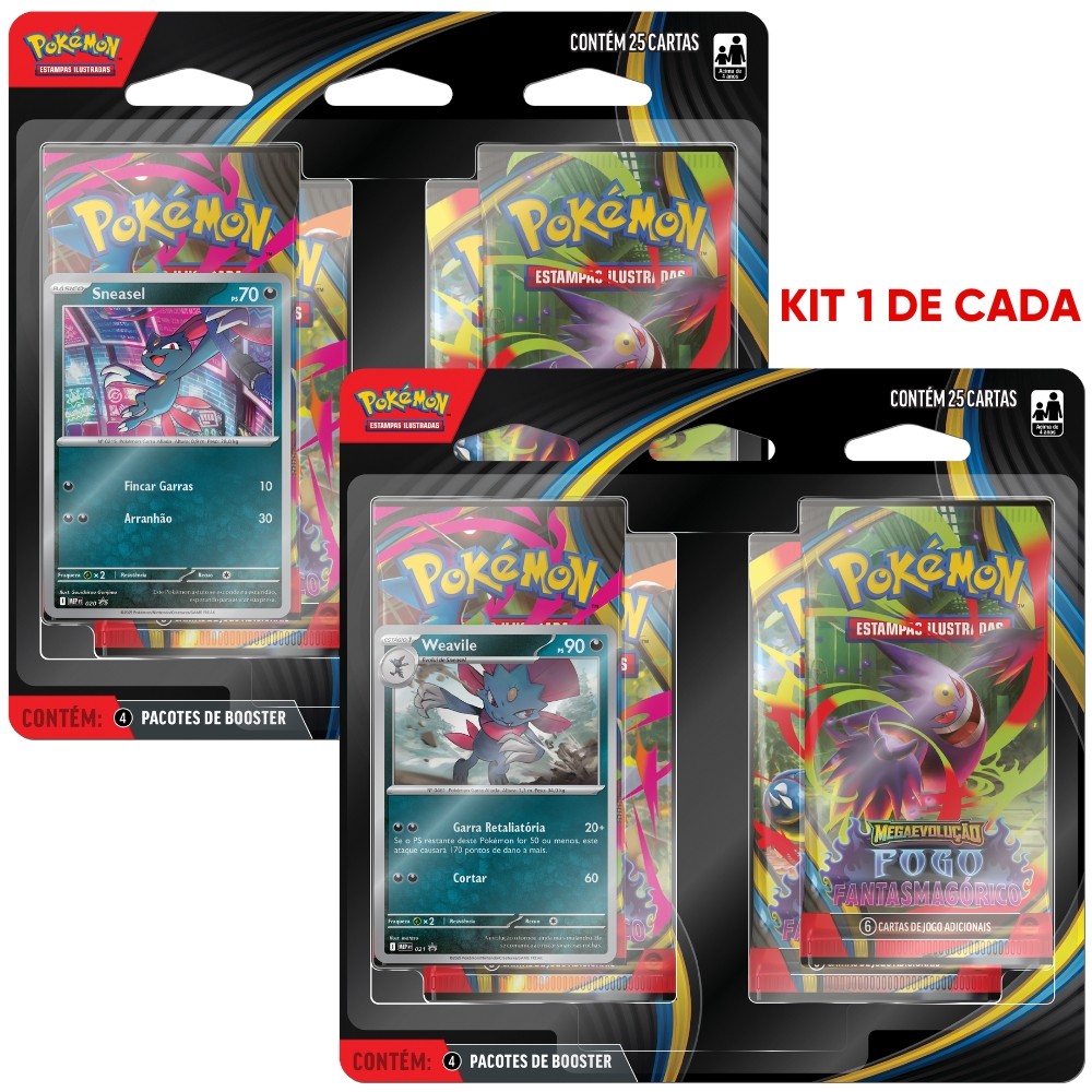 BLISTER QUÁDRUPLO MEGAEVOLUÇÃO FOGO FANTASMAGÓRICO ME02 COPAG POKÉMON TCG BOOSTER CARTAS MEGA PACK