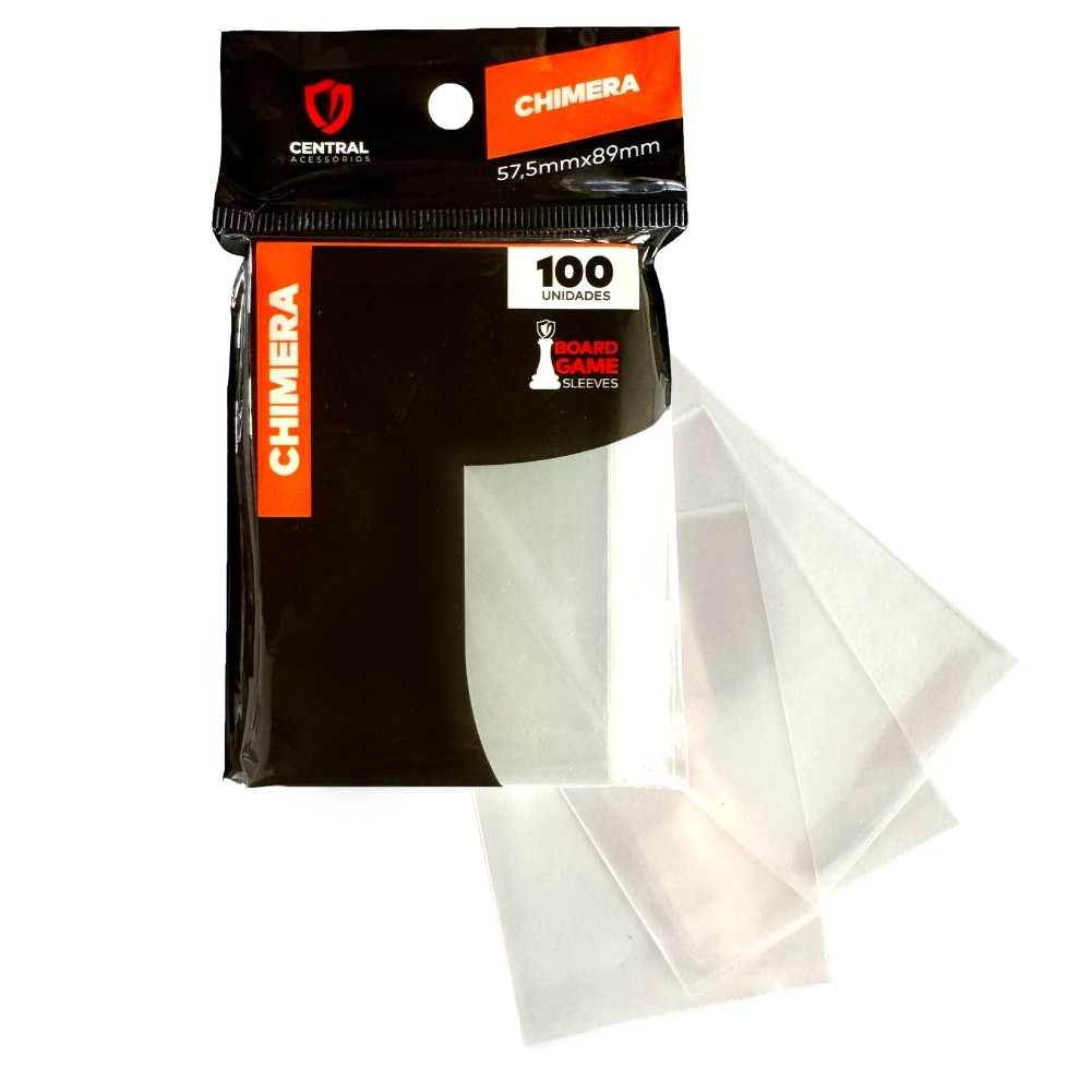 SLEEVE CHIMERA 57,5X89mm TRANSPARENTE CENTRAL 100UN BOARD GAME PROTETOR CARTAS ACESSÓRIO JOGO TCG