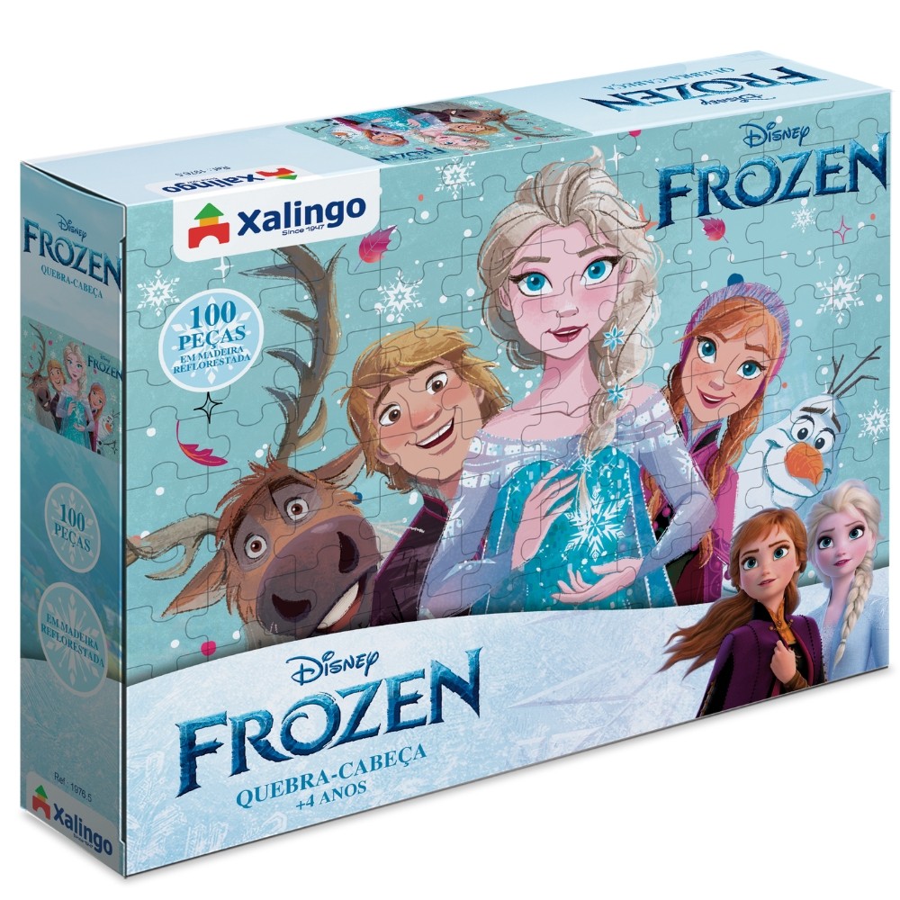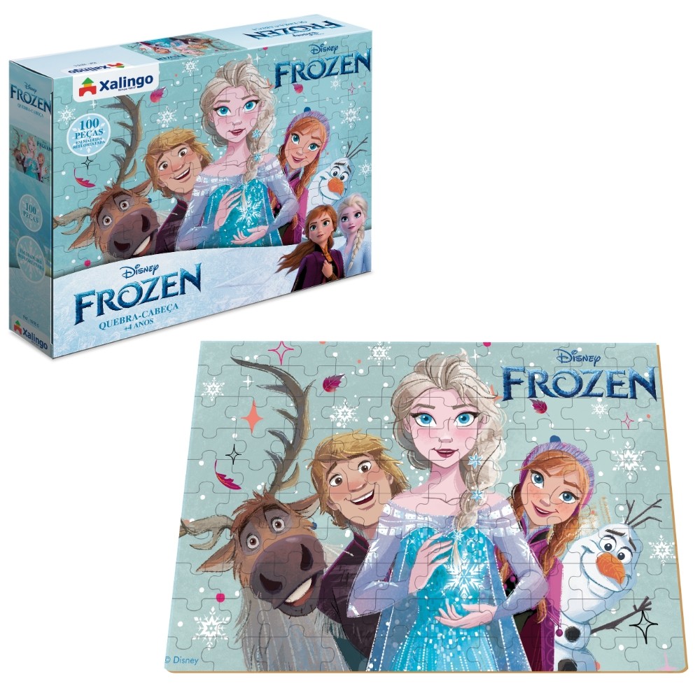 QUEBRA CABEÇA FROZEN DISNEY 100 PEÇAS MADEIRA REFLORESTADA XALINGO PUZZLE JOGO PRINCESA MENINA ELSA