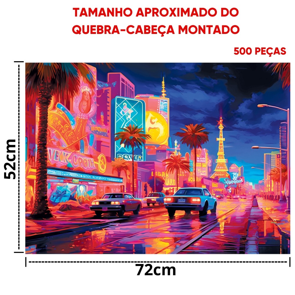 QUEBRA CABEÇA UMA NOITE EM LAS VEGAS 500 PEÇAS GGB BRINQUEDOS PUZZLE PAISAGEM PONTOS TURÍSTICOS EUA