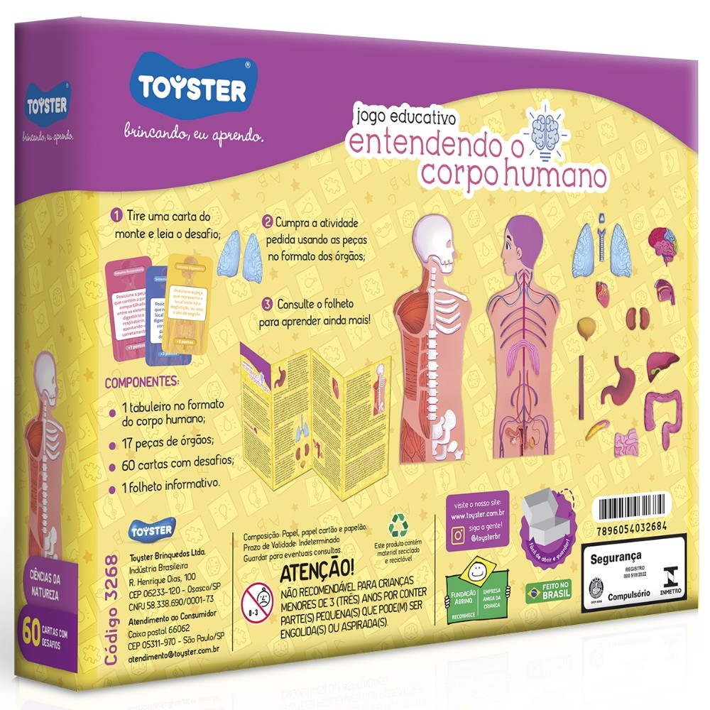 JOGO EDUCATIVO ENTENDENDO O CORPO HUMANO TOYSTER BRINQUEDO ÓRGÃO ESQUELETO OSSOS MÚSCULOS TABULEIRO