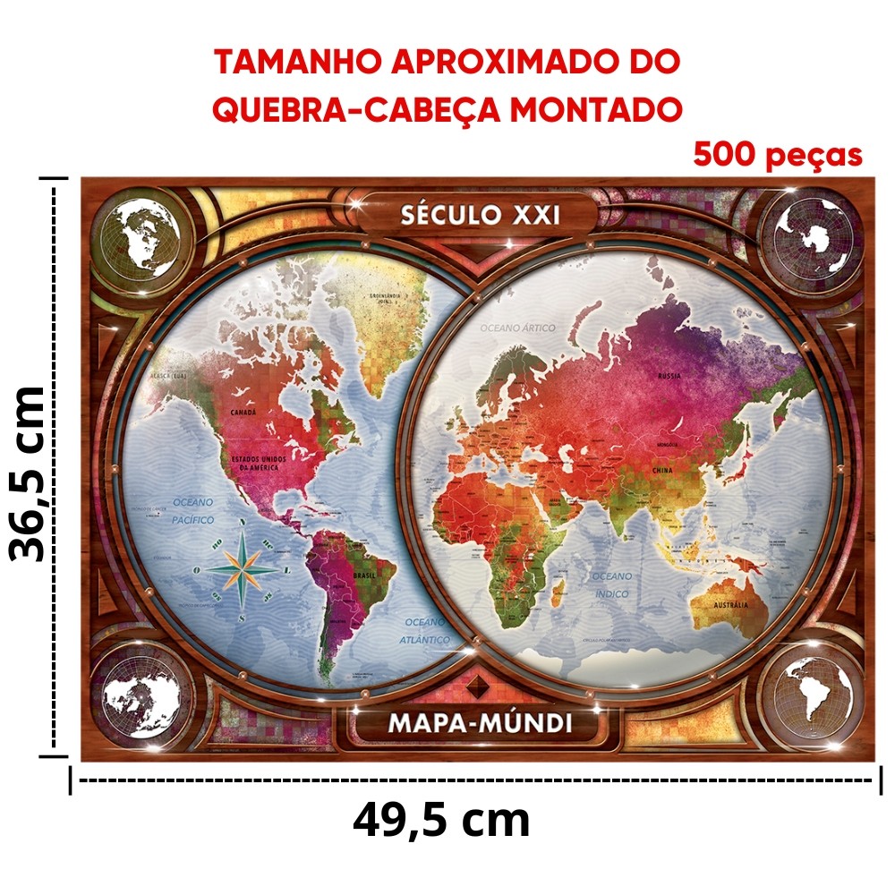 QUEBRA CABEÇA MAPA MÚNDI 500 PEÇAS GROW PUZZLE SÉCULO XXI TERRA GLOBO MUNDO GEOGRAFIA PLANETA PAÍSES