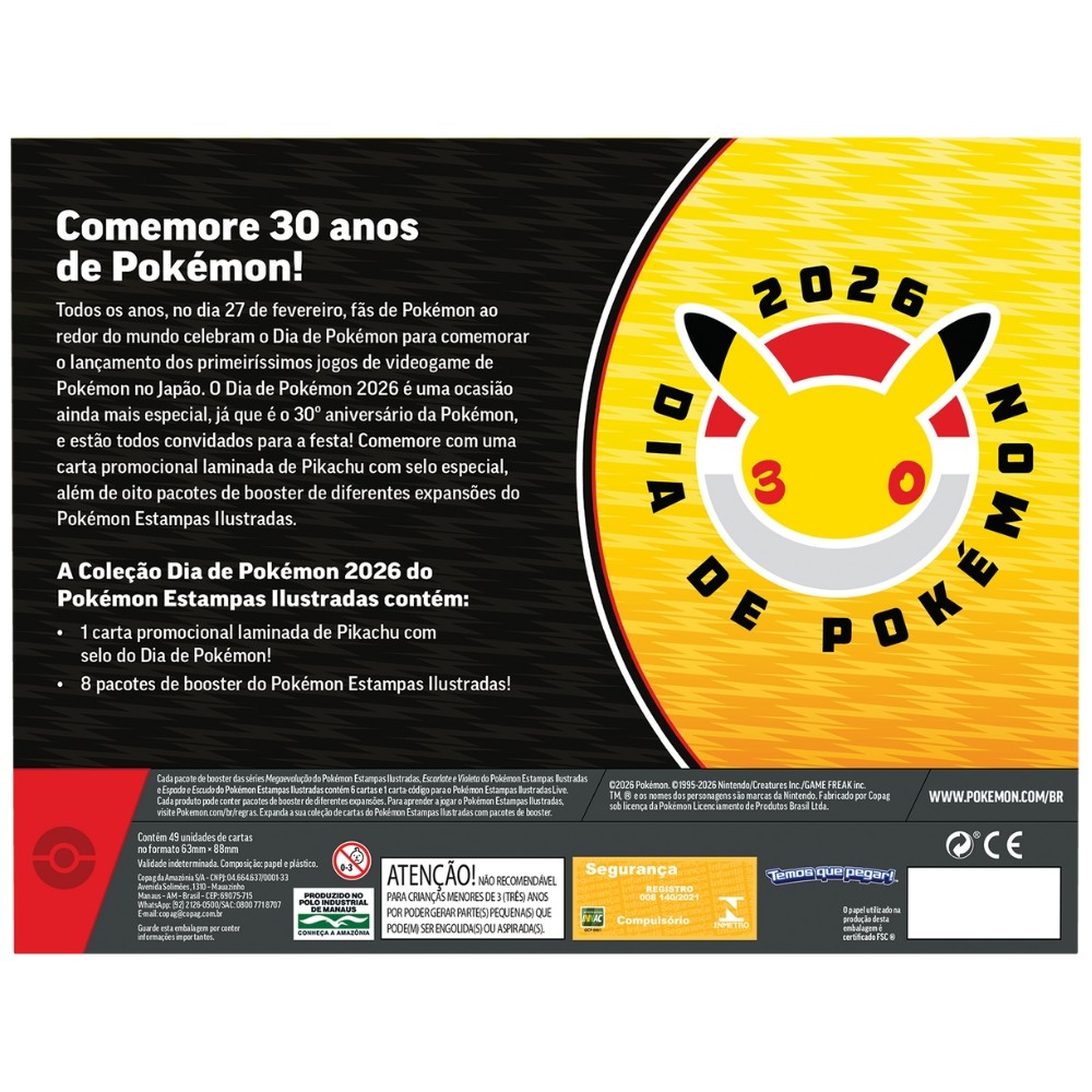 BOX PIKACHU COLEÇÃO 30 ANOS DIA DE POKÉMON 2026 COPAG MEGA ME2.5 TCG 49 CARTAS BOOSTER MEGAEVOLUÇÃO