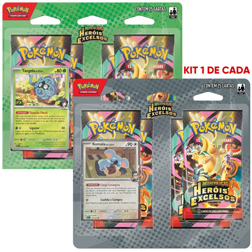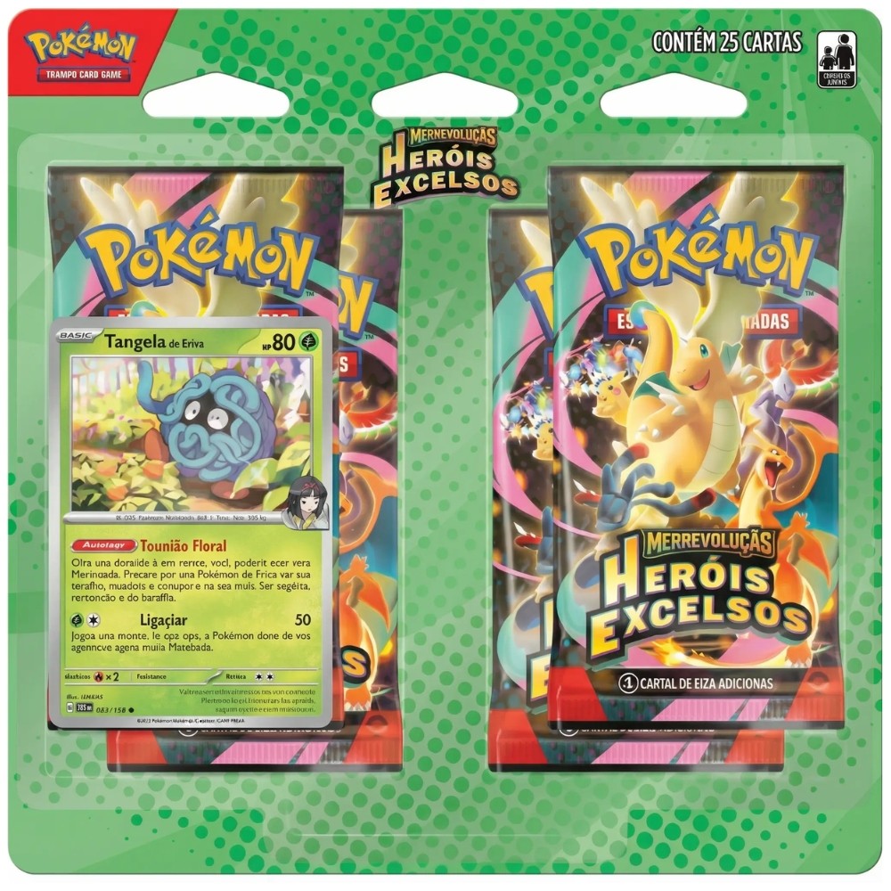 BLISTER QUÁDRUPLO MEGAEVOLUÇÃO HERÓIS EXCELSOS ME2.5 COPAG POKÉMON TCG BOOSTERS CARTA QUAD PACK MEGA
