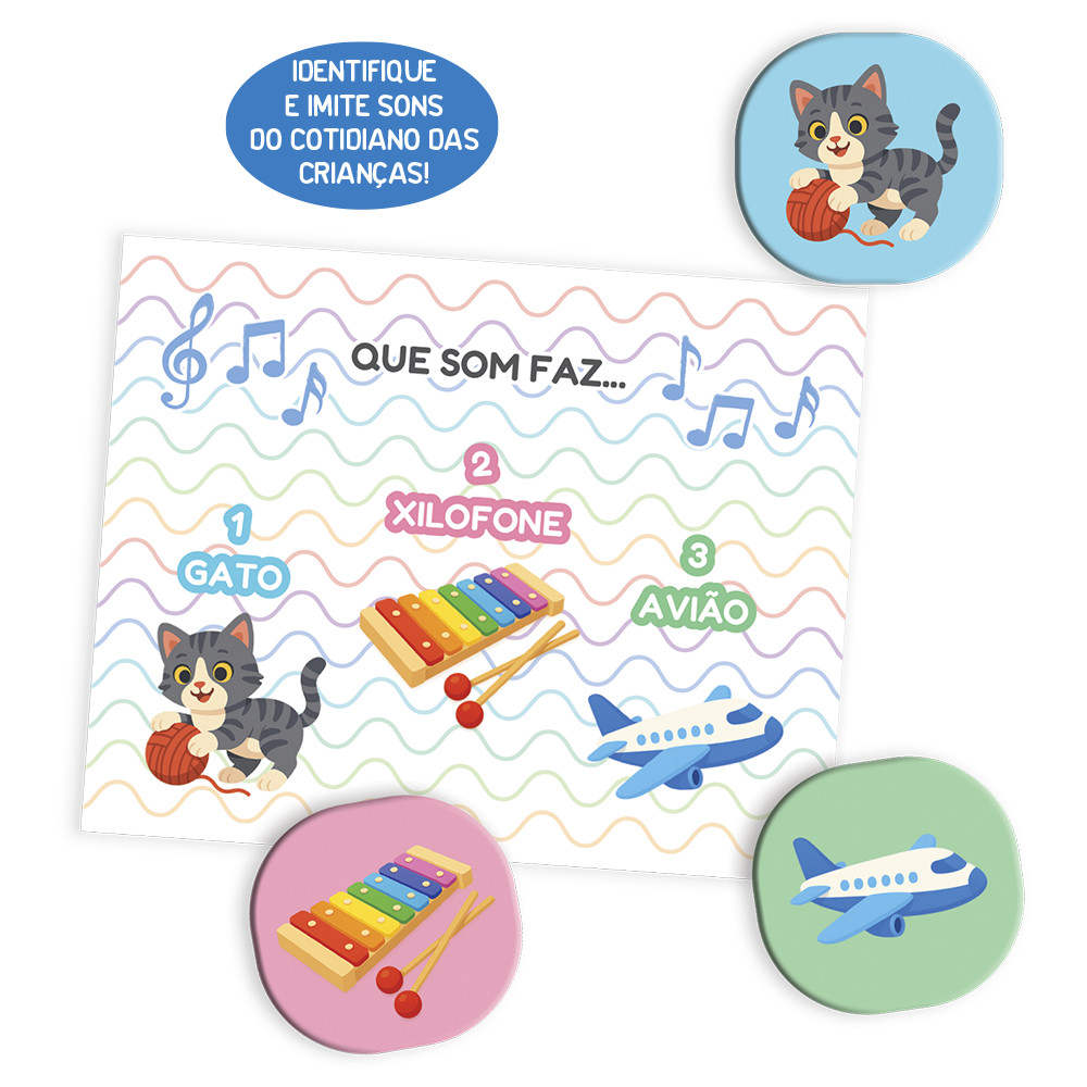 JOGO EDUCATIVO QUAL O SOM? TOYSTER IMITAR SONS BARULHOS CARTAS INTELIGÊNCIA MUSICAL LÓGICA OBJETOS