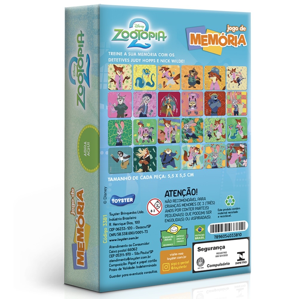 JOGO DE MEMÓRIA ZOOTOPIA 2 TOYSTER 24 PARES BRINQUEDO FILMES DISNEY ANIMAIS EDUCATIVO DESENHOS KIDS