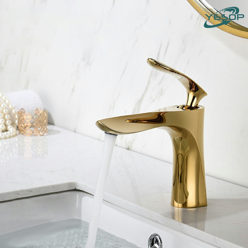 Torneira Banheiro Dourada Misturador Monocomando Bica Baixa Luxo Brilhante Yesop