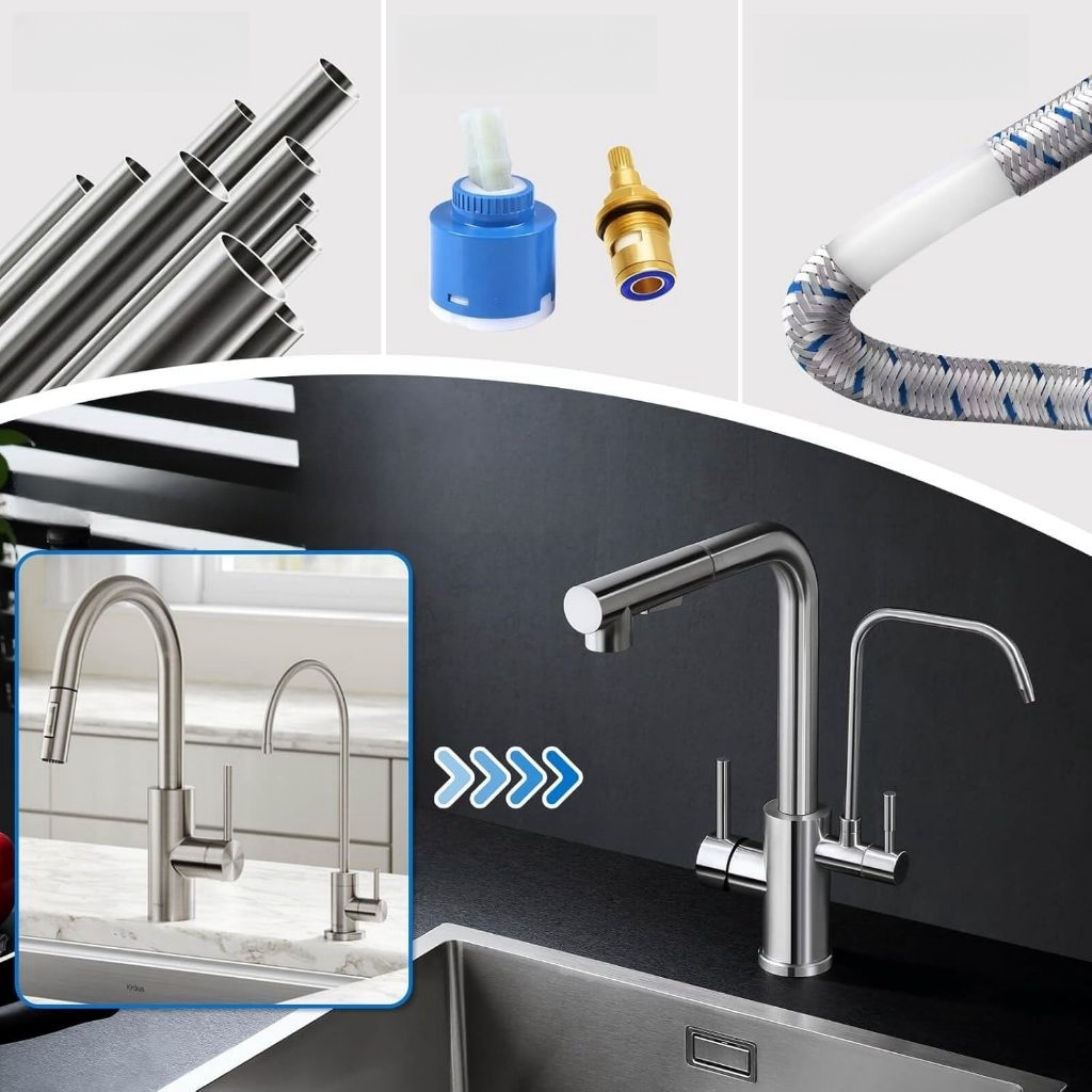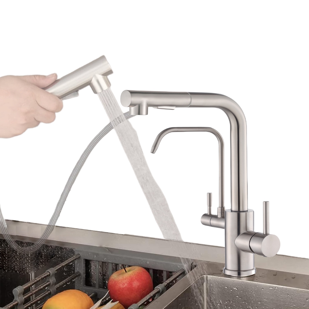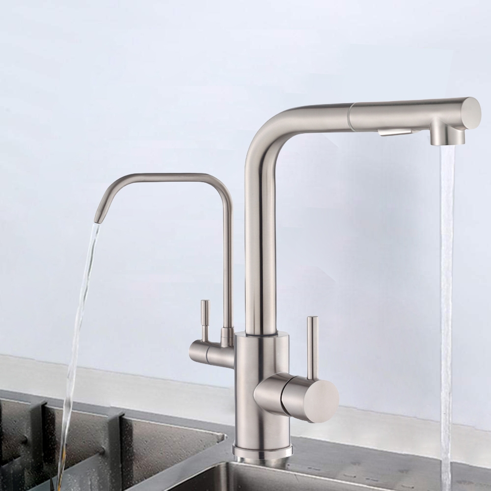 Torneira Cozinha Gourmet Bancada Luxo Escovado Aço Inox Com Saída De Filtro Yesop