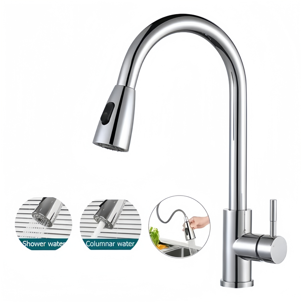 Torneira Gourmet Pia Cozinha Com Extensor Flexível Misturador Monocomando Pull Spray Arejador Articulado Inox Fosco